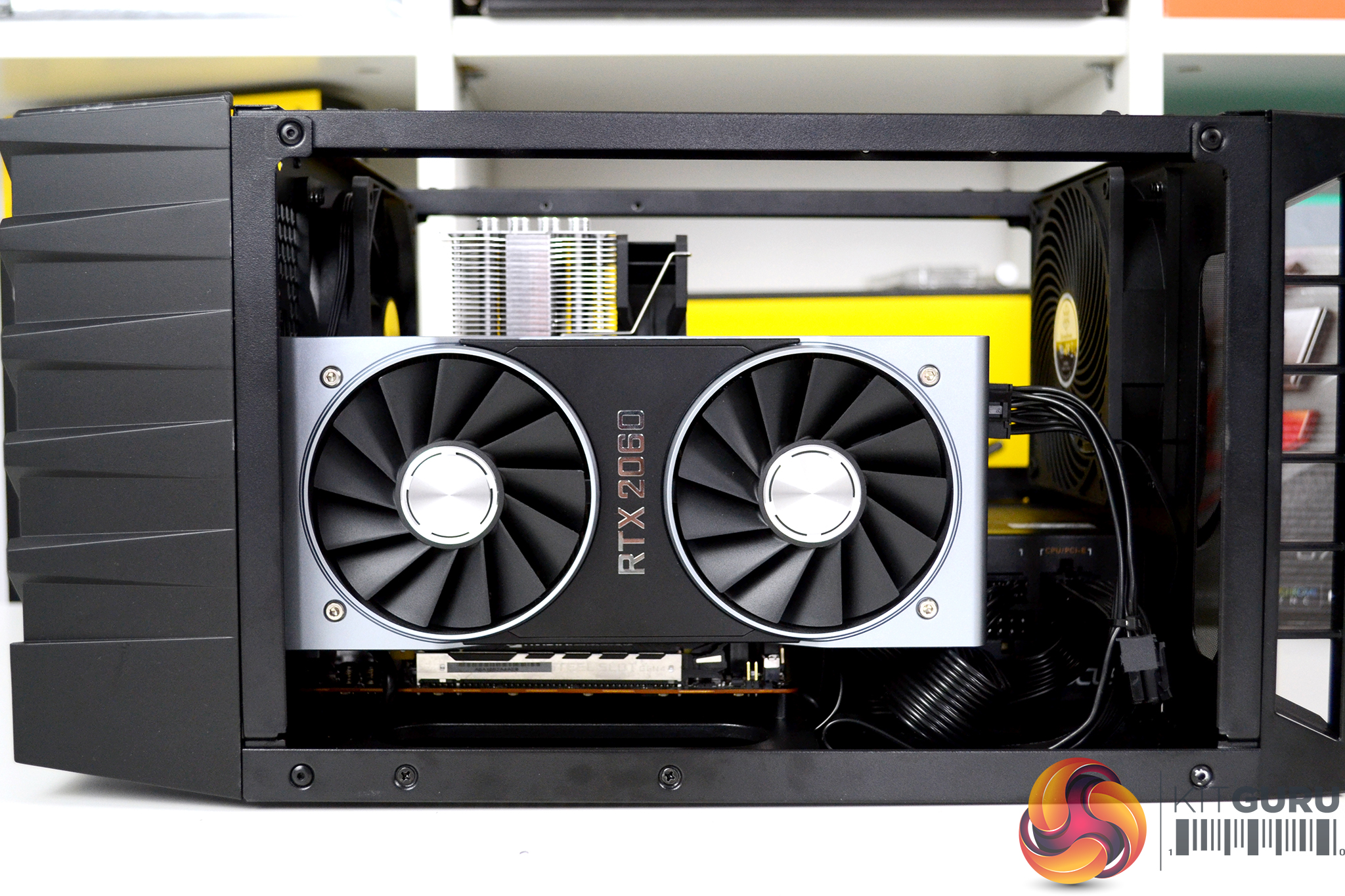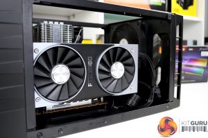 In the end, we opted for a reference Nvidia RTX 2060 which is approximately 250mm long. This was a breeze to install, it left a healthy gap at the rear of the card to plug in the PCIe power cable and matched the aesthetics of the CPU cooler, so it didn’t look out of place.