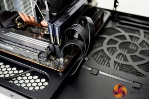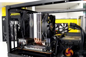 Choosing the right CPU cooler for the system wasn’t too difficult since the LD03-AF can support up to 190mm tall coolers. We played it safe and went with the be quiet! Pure Rock 2 which is 155mm tall. The Pure Rock 2 fit inside the case with space to spare so we could easily have got away with fitting a bigger cooler, however, the Pure Rock 2 left us some room to play with if space became limited once additional components were installed.
