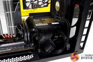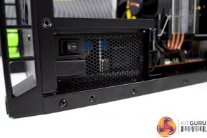 Power supply installation isn’t too difficult either, a bracket situated at the bottom of the case is removable and then fixed to the power supply before fitting back into the chassis. Manoeuvring the power supply back into position is a little tight with a motherboard installed but not too difficult.