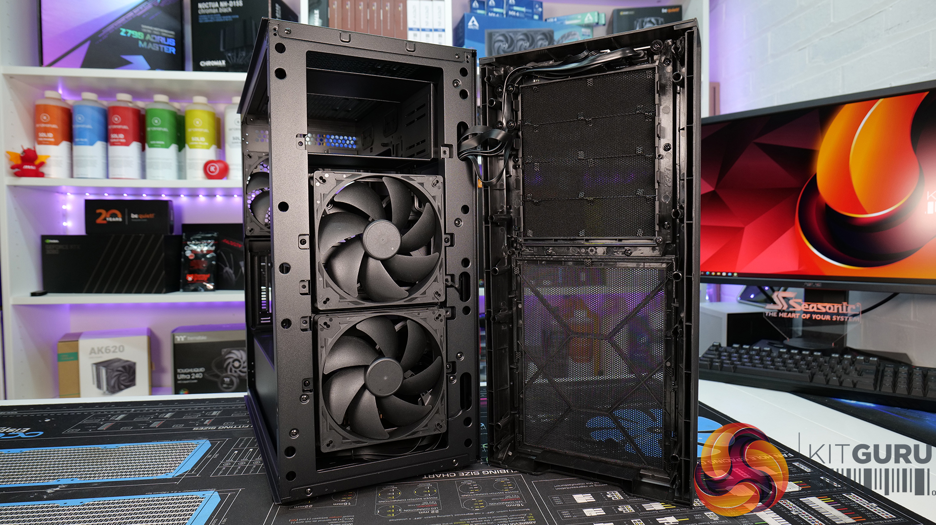 - Versatile support for air and water cooling with room for air coolers up to 182mm tall, radiators up to 360mm long and up to seven 120mm fans.