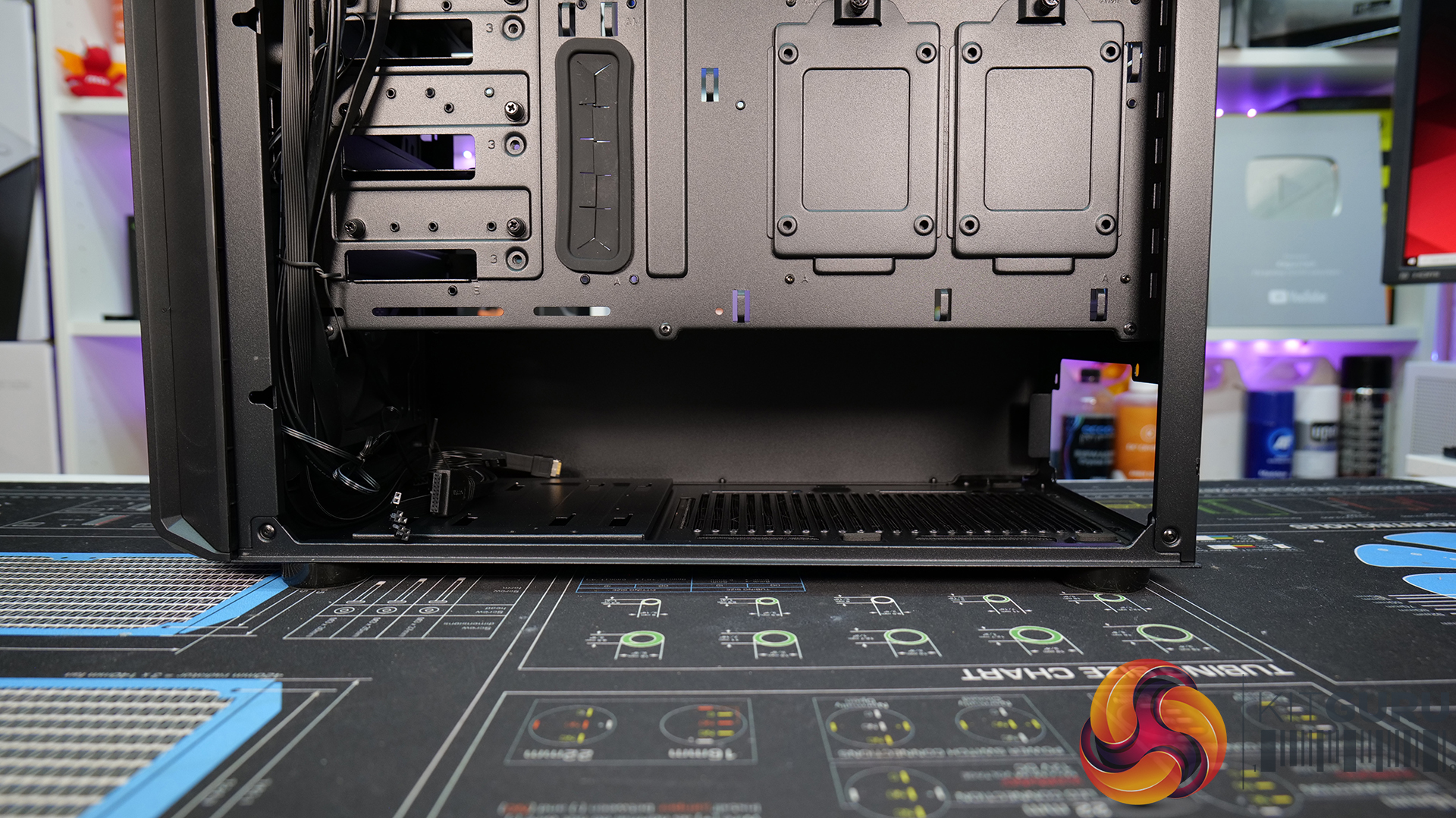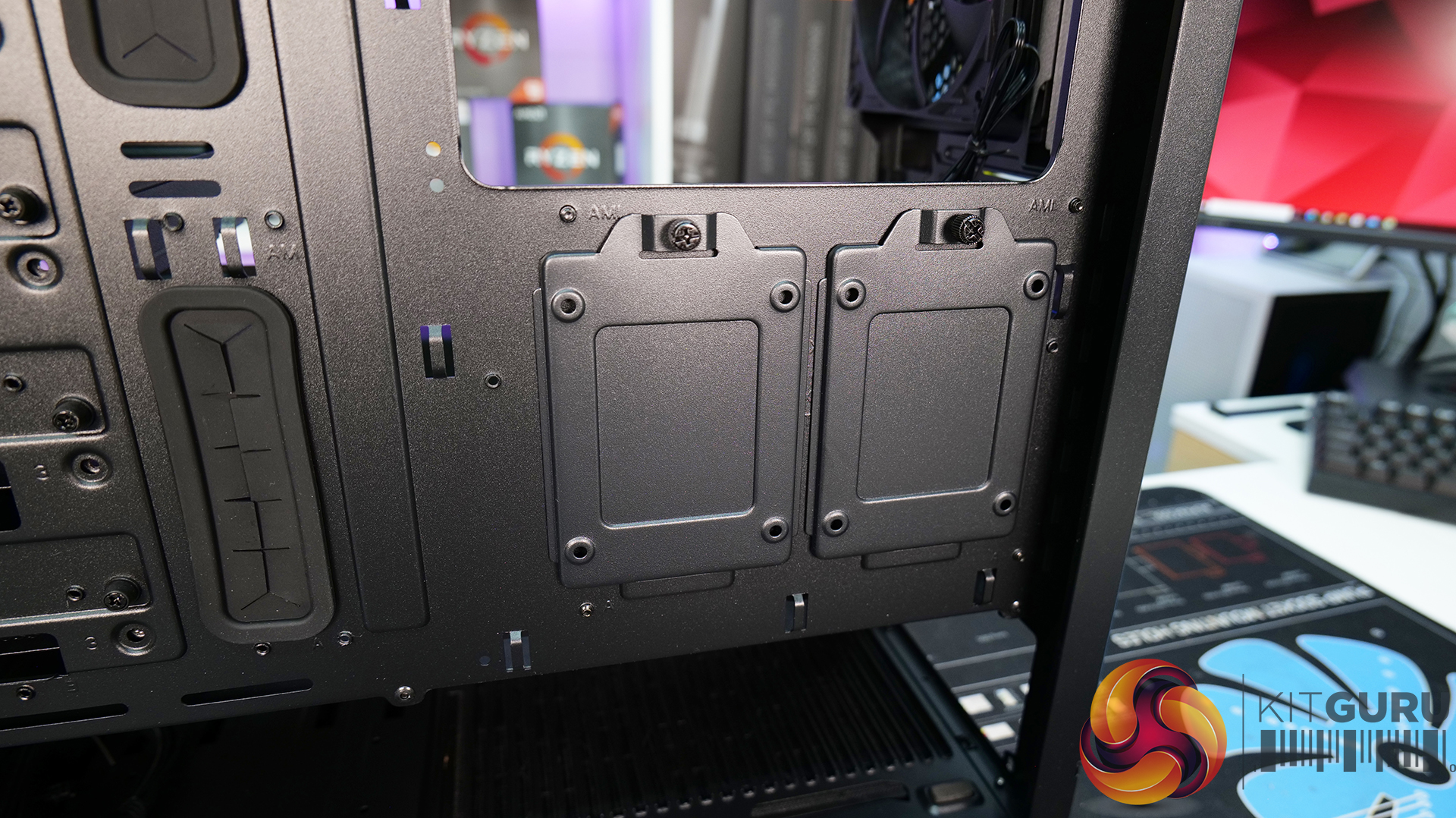 - Multi-function brackets at the front of the chassis can be utilised for mounting 2 x 2.5” SSSD drives, pump res combos or alternatively used as cable management cover panels for a clean interior look.