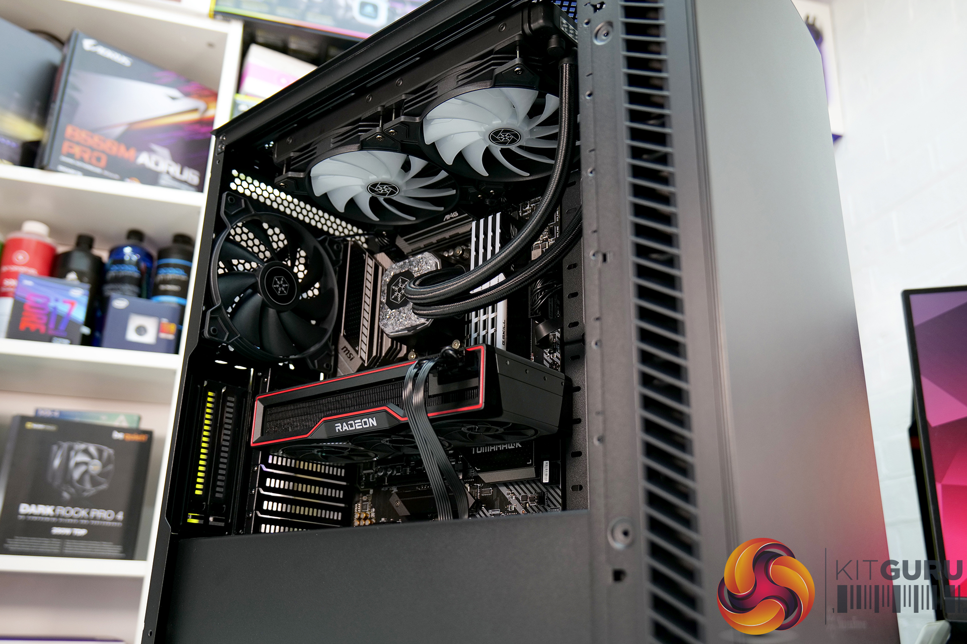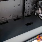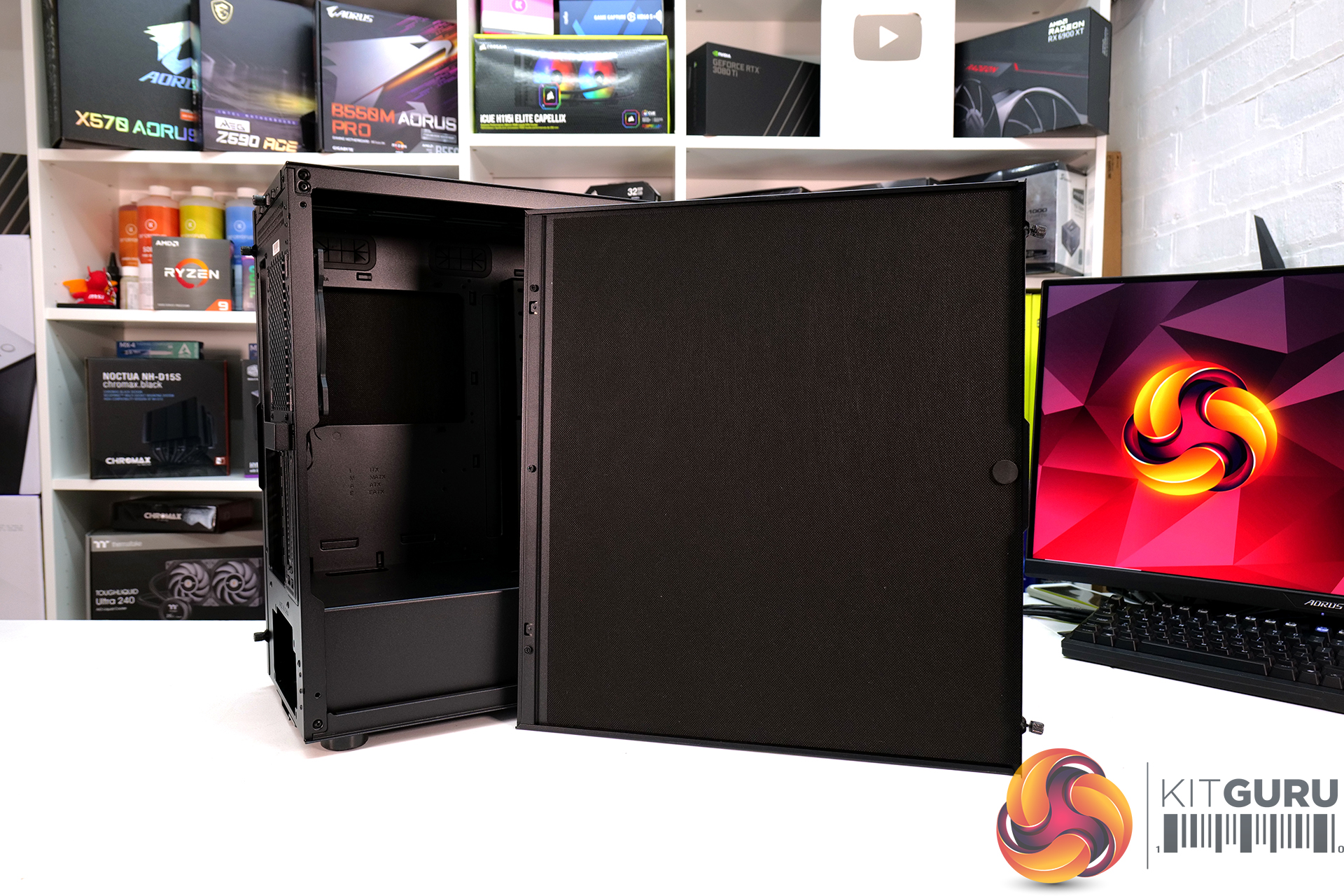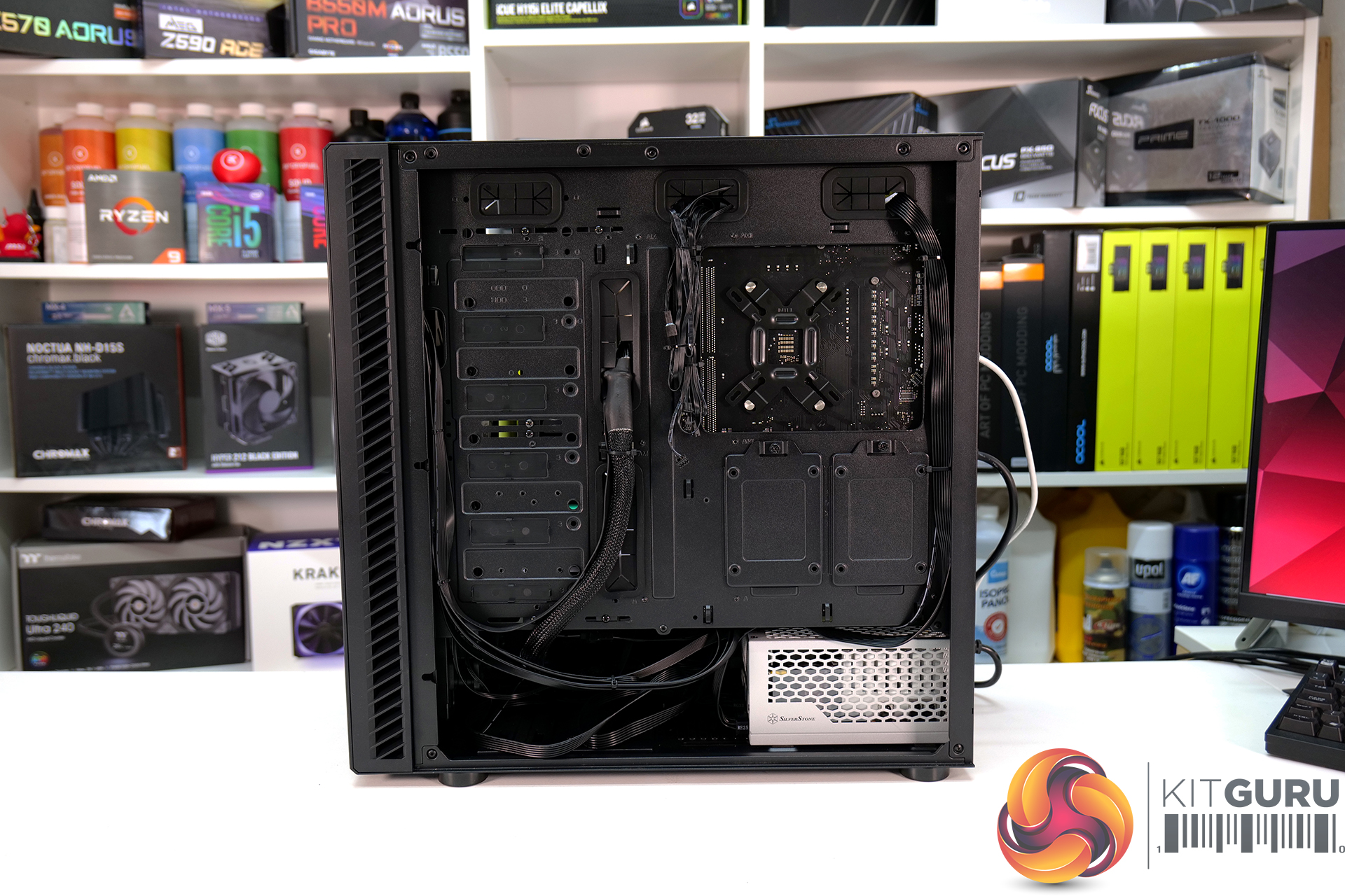 With a custom fan curve set, removing the front panel also noticeably reduces noise output as the fans can run at their base 650RPM configured speed since the CPU temperature remains low. With the case in its default configuration – with all panels installed, and the custom fan curve set, the fan speed automatically ramped up to over 1000RPM as the system attempted to reduce CPU temperature, which therefore significantly increase noise.