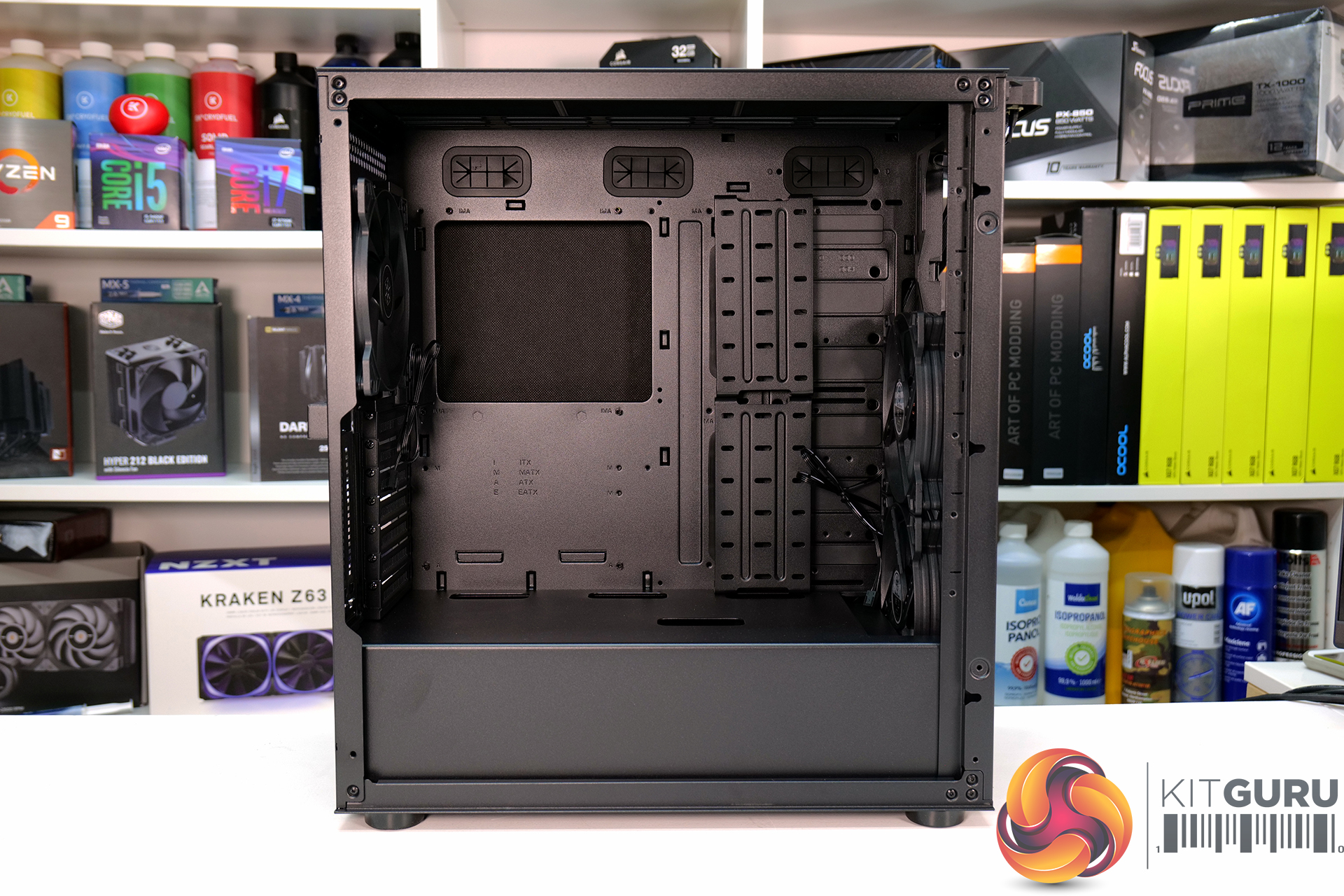 - Installation of up to 360mm radiators supported in the roof and front panel as well as support for the installation of up to seven 120/140mm fans.