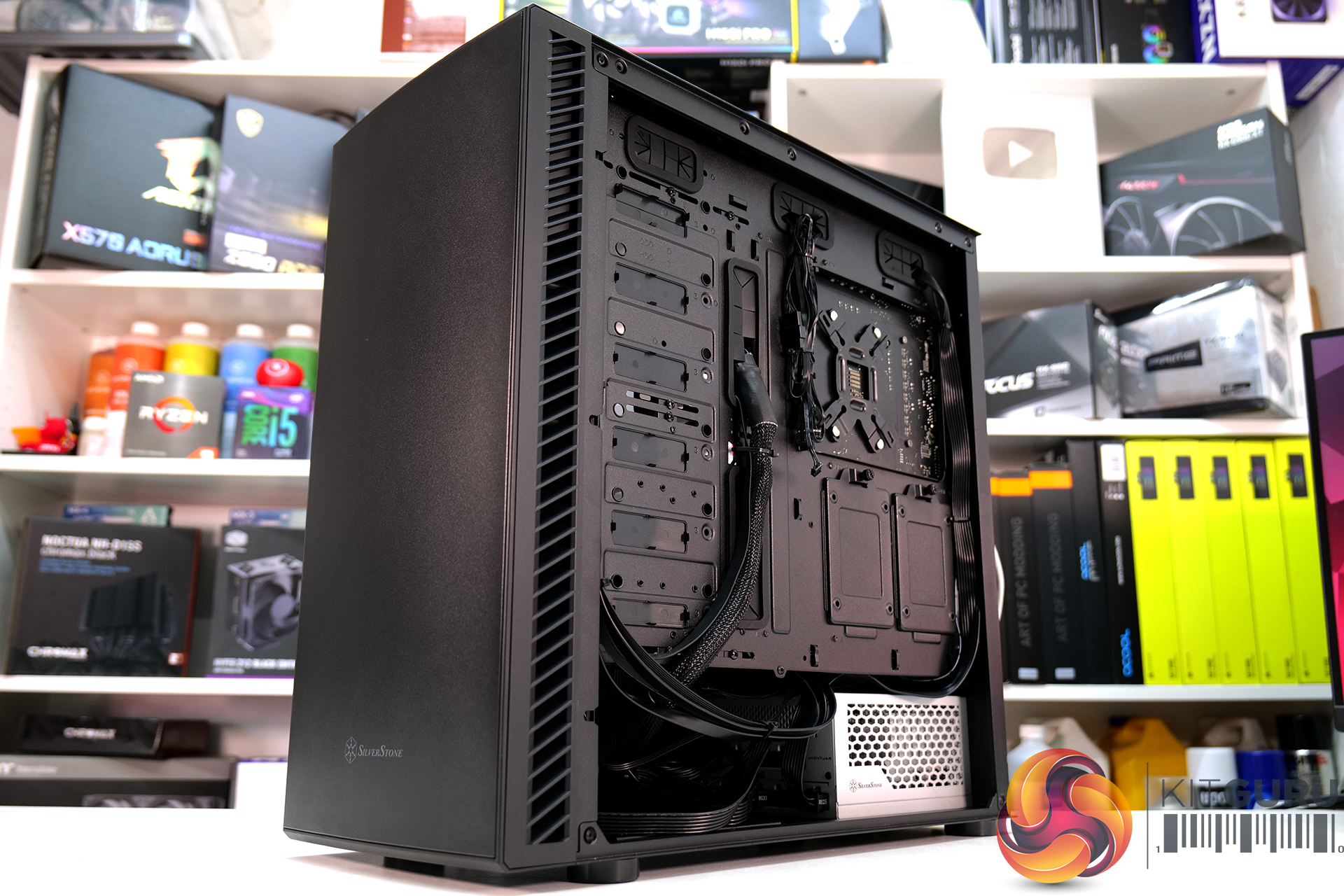 With either the Noctua NH-D15 or the Silverstone AIO installed, noise levels and thermal performance followed a similar trend. Without a doubt, the case emits the least amount of noise when in its default configuration, with fan speed fixed at low RPM. However, this is also where the case suffers in terms of thermal performance massively.
