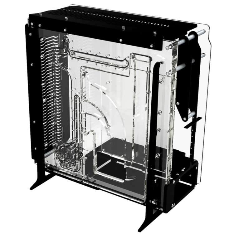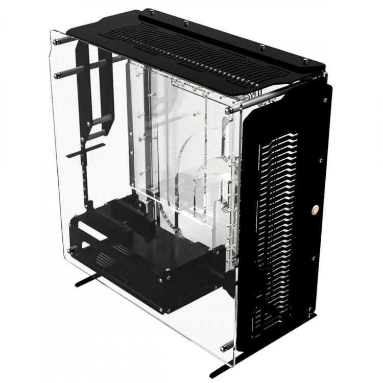 The Singularity Spectre 2.0 is a larger open frame E-ATX chassis perfect for installing complex custom water cooling on high-end systems. The mid-tower open frame chassis also has a distribution plate as a motherboard tray, it can accommodate two 360mm radiators and includes the option for vertical graphics card mounting with mounting bracket and riser cable included.