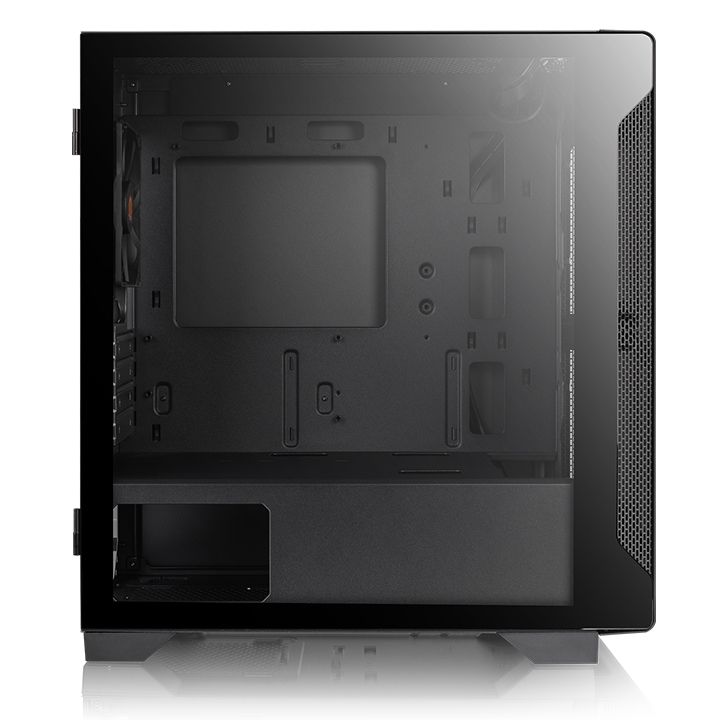 The S100 Tempered Glass Micro Chassis from Thermaltake is suitable for Micro-ATX or Mini-ITX motherboards due to its compact form factor. A left-hand side 4mm thick tempered glass window is mounted on hinges with a magnetic latch for easy access and provides a stunning view of internal components. An enclosed front panel design features side vents for airflow into the chassis and top-front mounted I/O connectivity offers practicality.