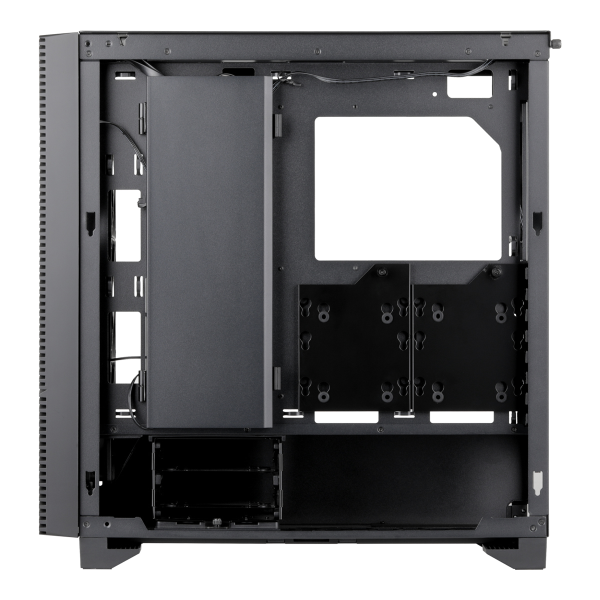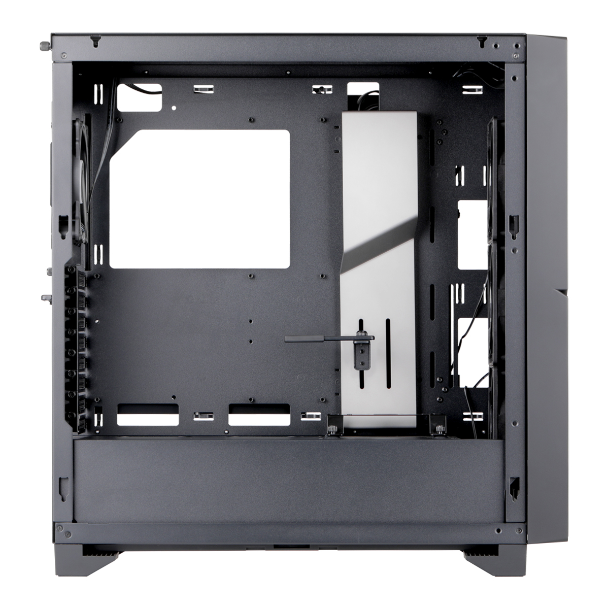 The left side tempered glass panel offers a clear look to the inside of the case, while the right side smokey tempered glass panel was designed to be easily removable to promptly access the inside of the case. There's a cable routing kit with a GPU support bracket, allowing you to reduce the cluttering of cables and preventing the graphics card from sagging.