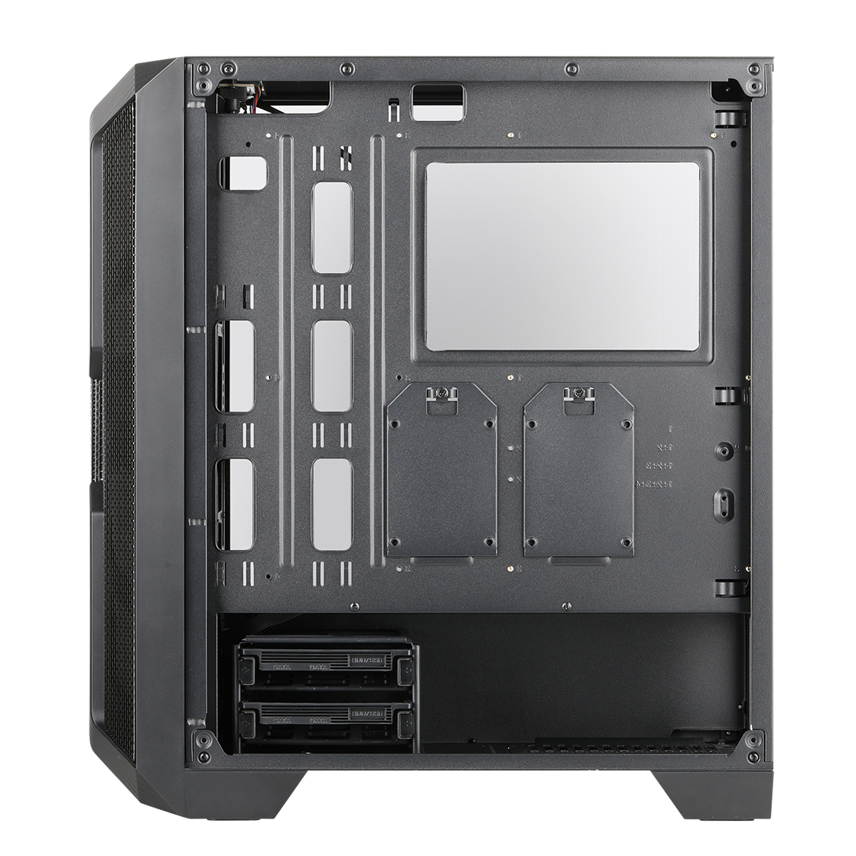 With the included HDD tray installed, the case has 2x 3.5-inch drive bays and 4x 2.5-inch drive bays (2x if there's no HDD tray). Beside the included fans, there's also support to install up to 2x 120/140mm fans or 1x 120/140/240 radiator on the top. At the rear, it only allows for the installation of a single 120 radiator, but on the front, it's possible to install a 120/240/360 radiator.