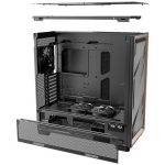 The Flux Pro has extensive support for cooling components, including up to 3x 140/120-mm fans on the top and front, 2x 140/120 mm on the bottom, 3x 120 mm on top of the PSU shroud and a 140/120 mm fan on the rear. Radiator support is also quite good, supporting up to 420 mm rads on top and front, 360 mm on the PSU shroud, 240 mm on the bottom and 140 mm on the rear.