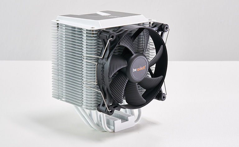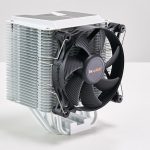 Starting with the Shadow Rock 3 White, this is the same cooler that we've reviewed before but with a white finish on the heatsink. As per be quiet!, the white finish won't affect thermals by more than one degree. Just like the original Shadow Rock 3, it will come with a Shadow Wings 2 120mm PWM fan, and a black and white top covering the heatsink. The heatsink is connected to the flattened contact plate by 6x nickel-coated heatpipes, and is rated to handle up to 190W TDP processors.