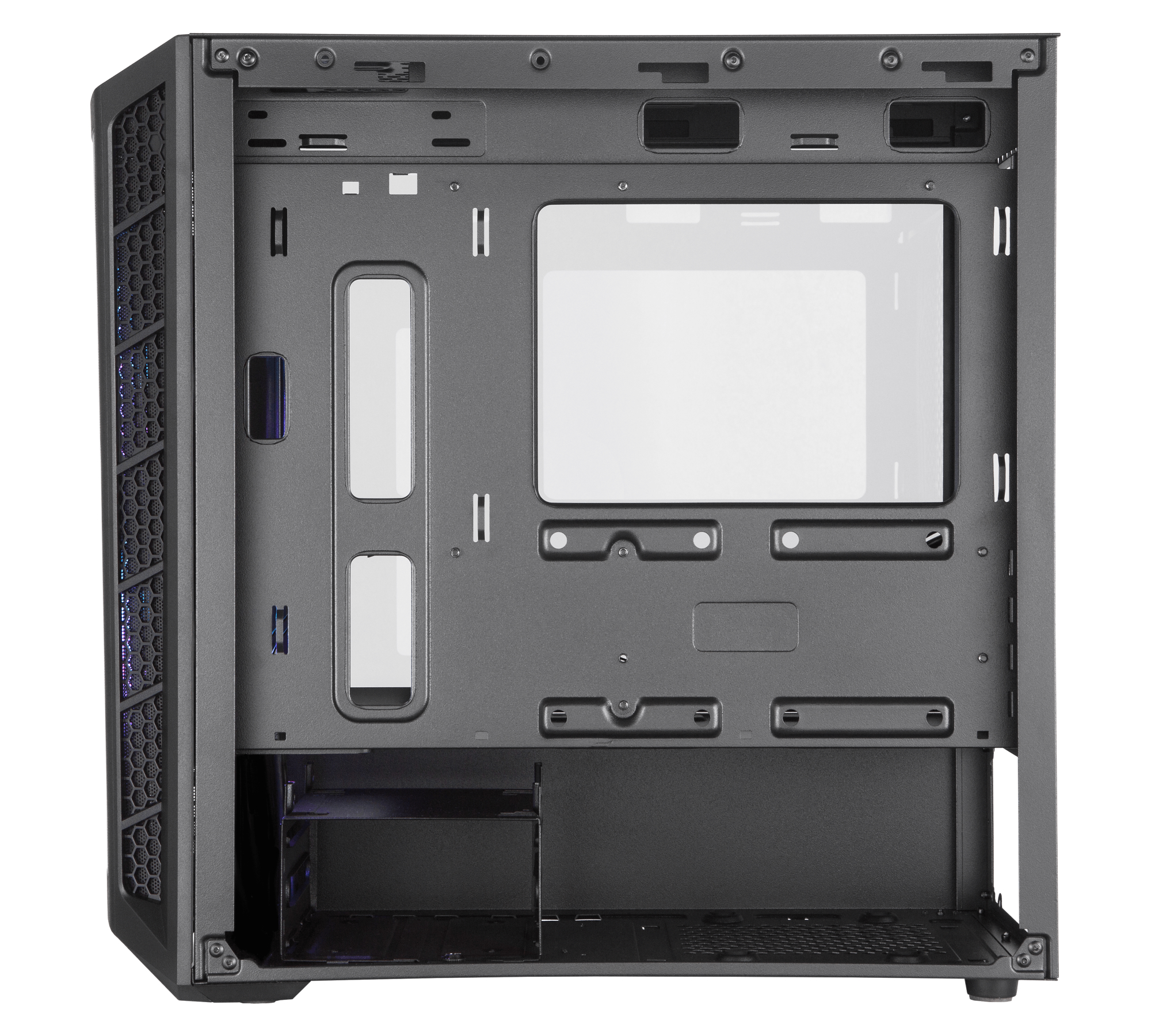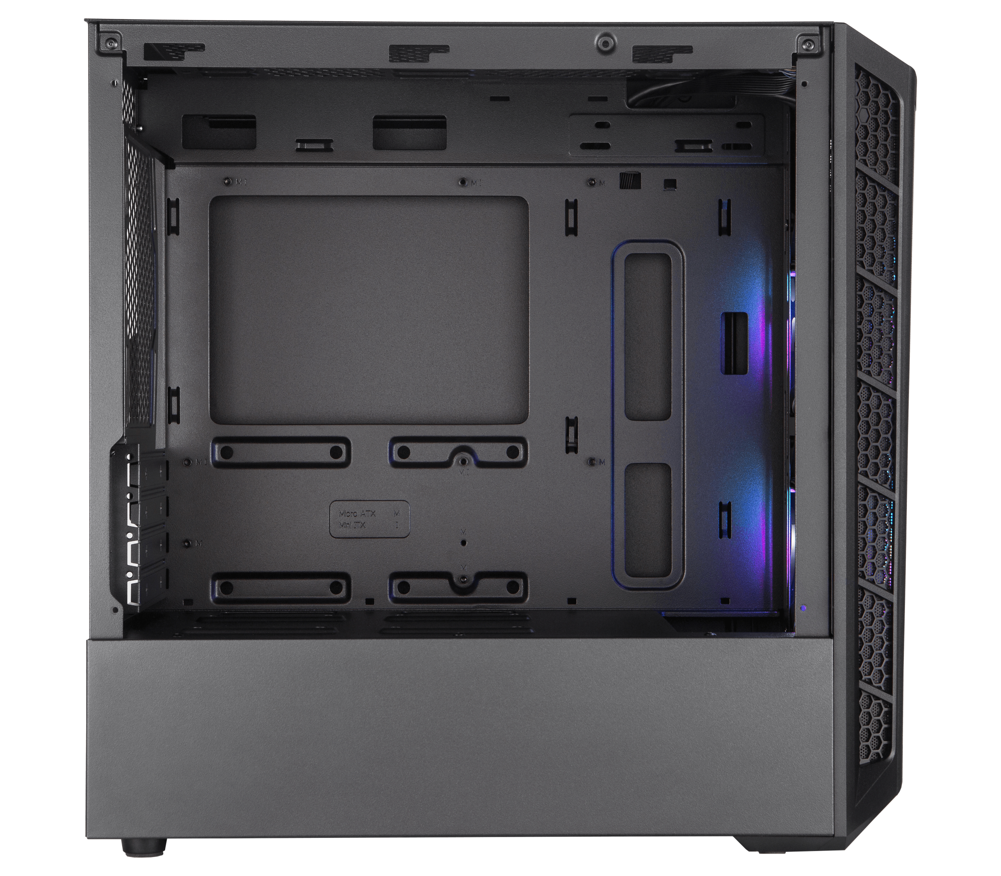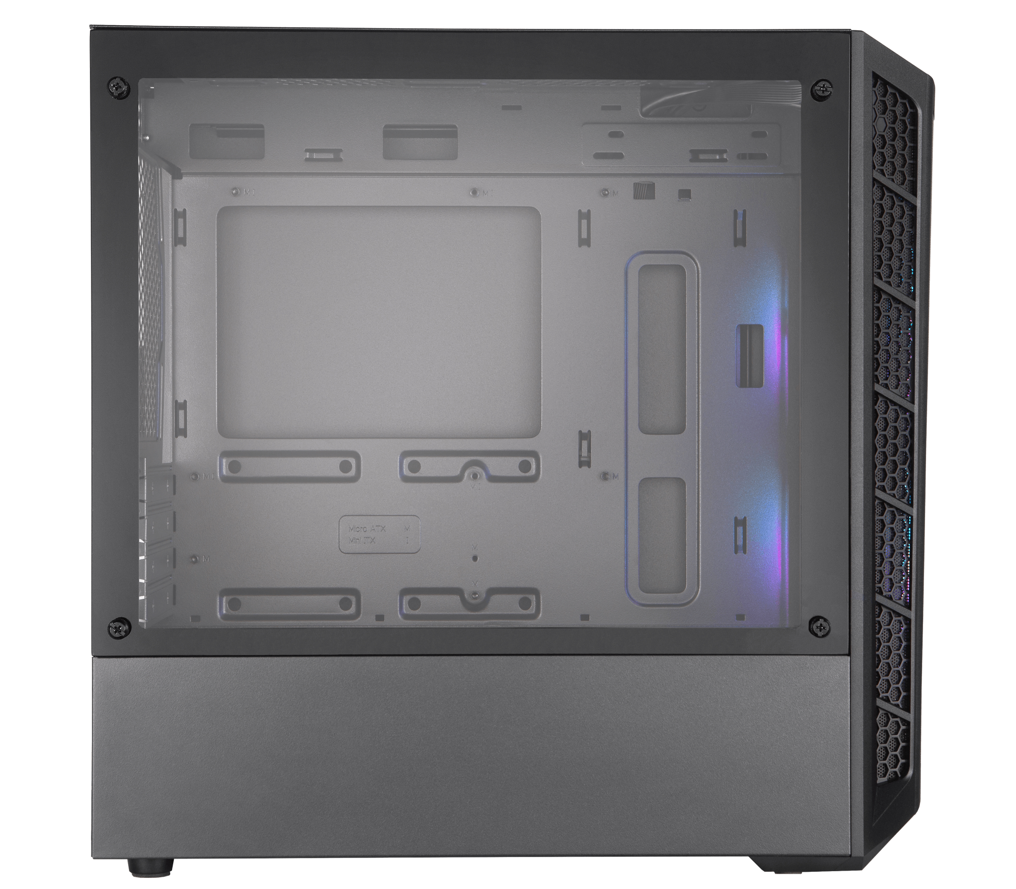 While the MB311L design focuses on delivering optimised airflow, the MB320L is slightly more closed off. The MB311L's airflow capabilities come from its ‘Fine Mesh' front panel that is complemented by two honeycomb vents on each side. The MB320L uses a ‘DarkMirror' panel which is made of smoked acrylic. According to Cooler Master, this will “sharpen the contrast of the ARGB fans”, while the two honeycomb vents on the sides should still allow enough airflow.