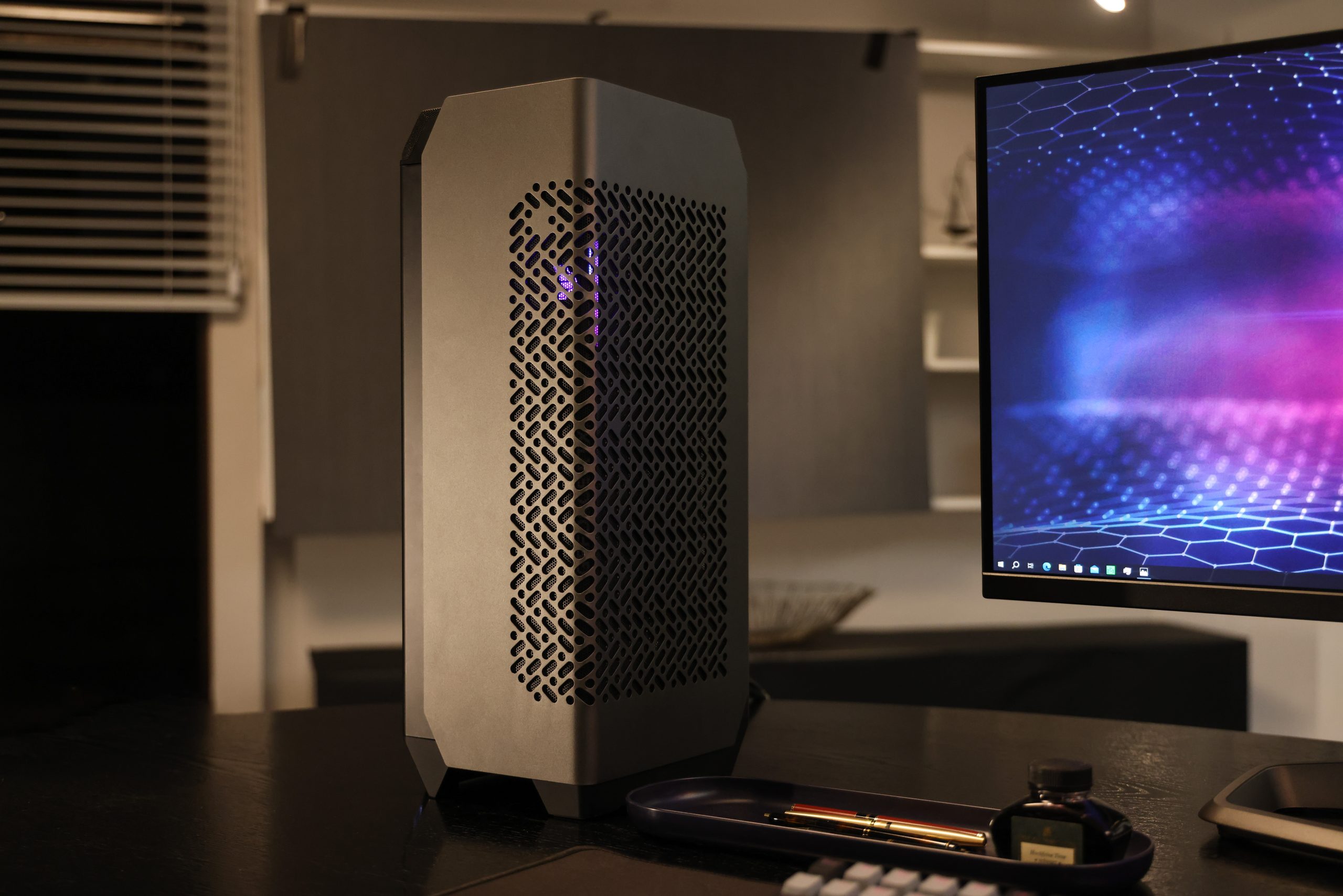 The Ncore 100 Max is made of aluminium alloy and has a volume of only 15.7 litres. Still, it has enough space for a 120 x 38mm custom AIO liquid cooling system and a V SFX Gold ATX 3.0 850W PSU, both included with the case.