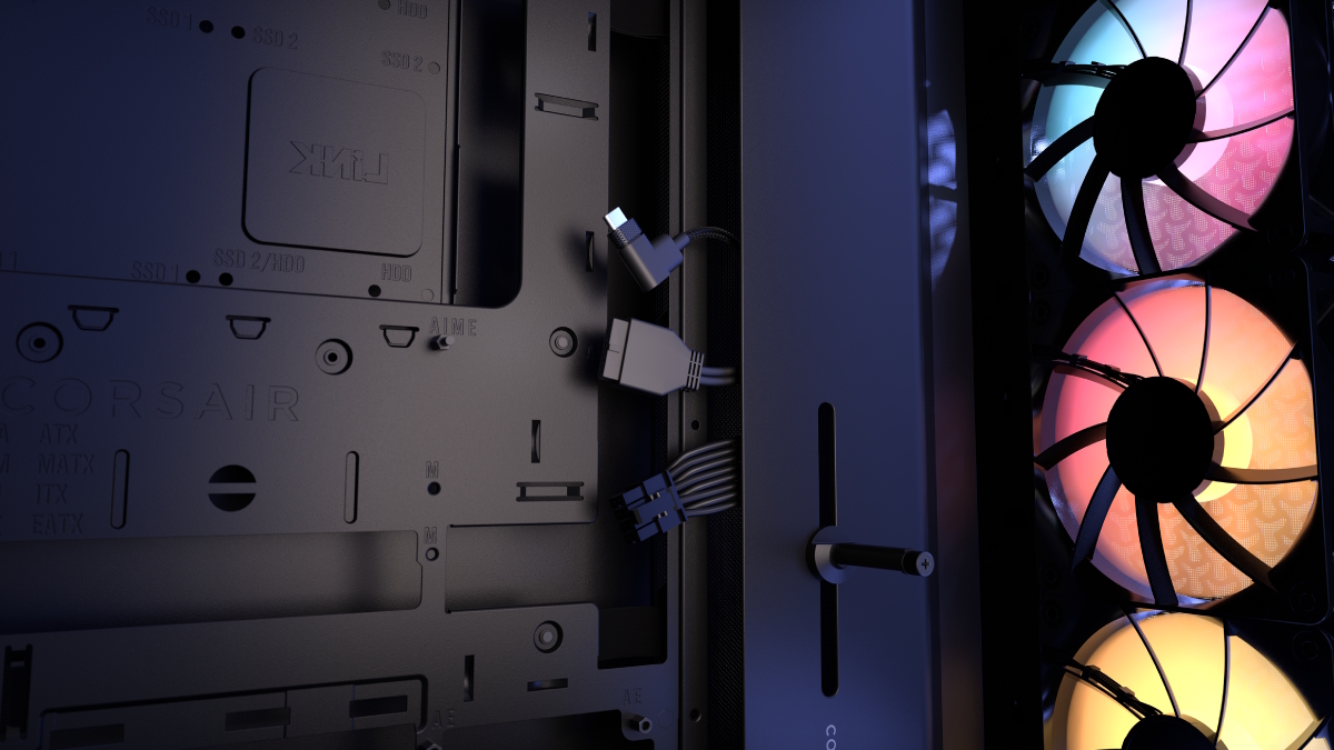 Beyond the screen, the case has been refreshed with stronger steel panels and optimised airflow. It ships with four RS120 PWM ARGB fans (three as front intake and one as a rear exhaust) with motherboard-controlled lighting. The interior is highly adaptable, featuring the InfiniRail Fan Mounting System, which supports up to 13 fans in total and dual 360 mm radiators.