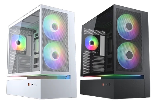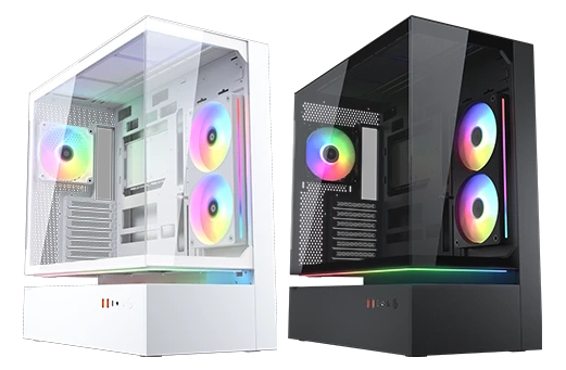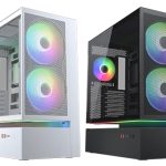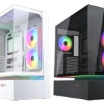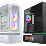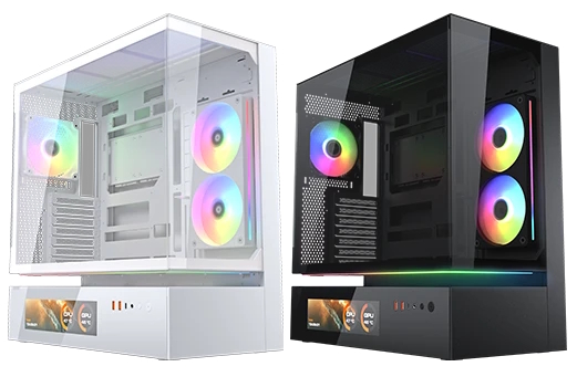 Headlining the “Cooling Evolved” launch is the CFV235 case series, which is built around a “Floating Ventilation” structure that creates an open, suspended area below the main chamber to improve airflow. The series comes in four distinct flavours: the standard model, Mesh, Vision, and Mesh Vision. The “Vision” models feature a large 9.16-inch, 1920×1080 IPS LCD for system monitoring. All models also support back-connect motherboards for a clean look.