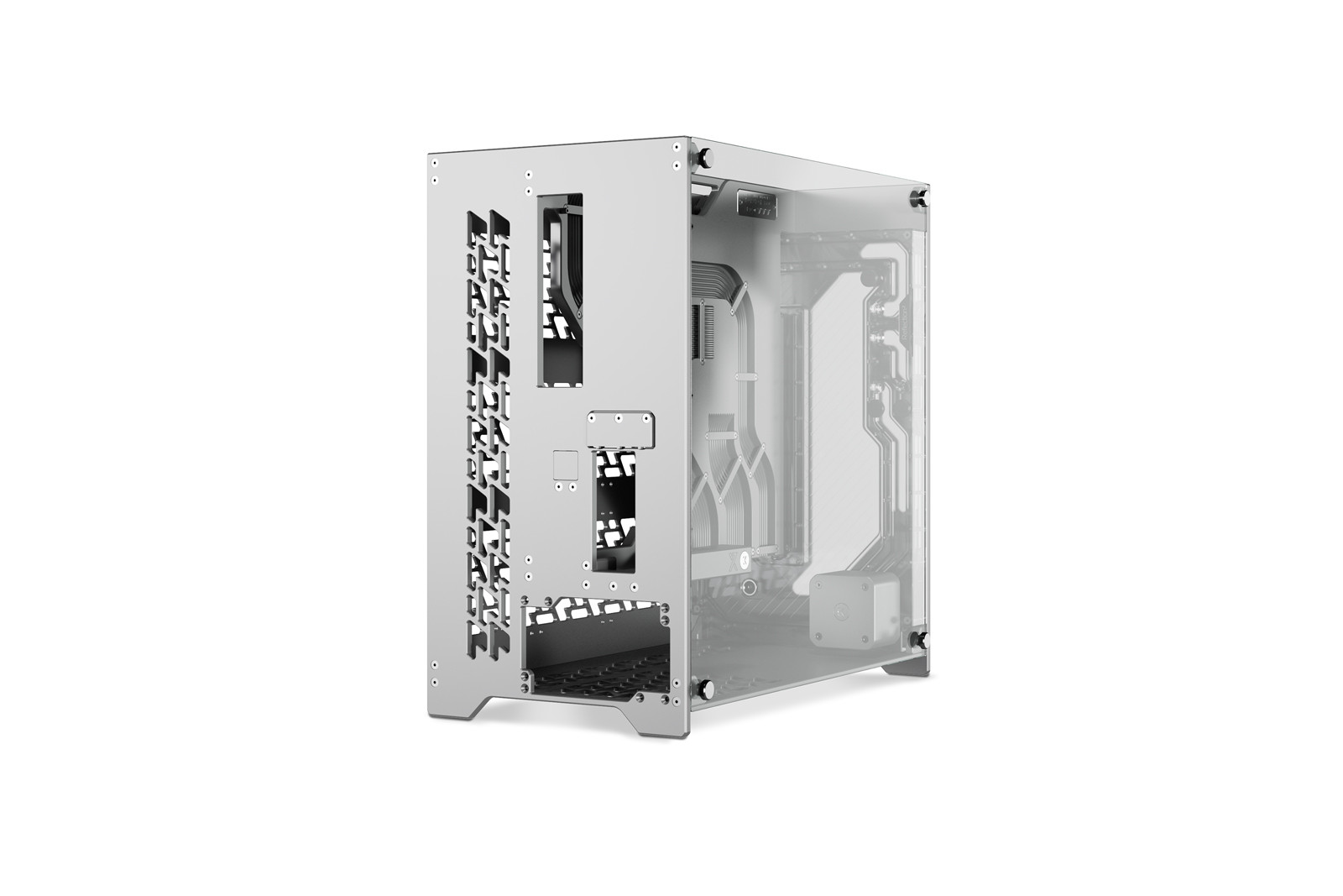 This case has a semi-open design with an open top and a handle to enable you to move or carry the case. The sleek aluminium appearance, along with the simplistic but stunning design, makes it stand out in any place you put it. The tempered glass side panel reveals internal components, enabling you to show off your system.