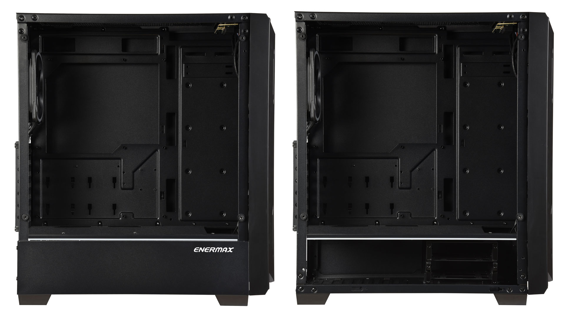 The case's minimalist design is complimented by multiple RGB LED strips on the front panel, which Enermax claims provides an “elegant” look to the chassis. The side panel has a 4mm tempered glass window, which can be opened like a door and allows you to show off your system.