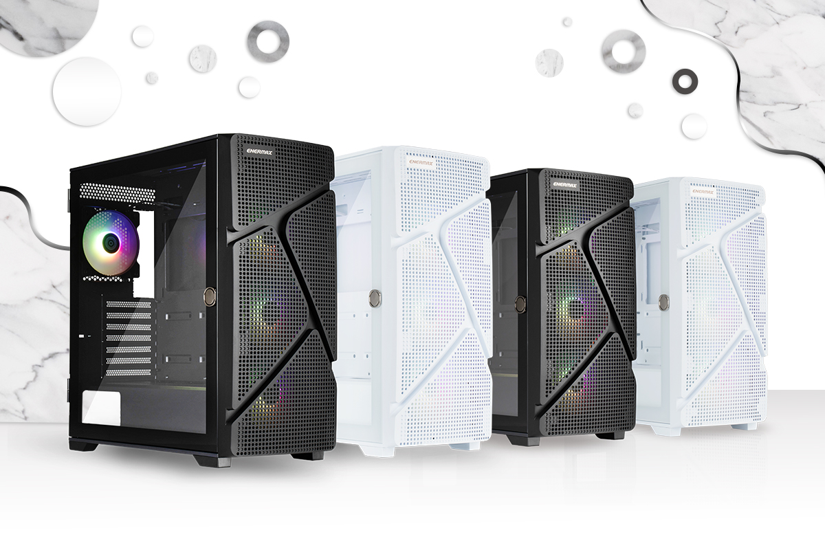 Enermax has launched two new PC cases: the MS31 mid-tower and MS21 mini-tower airflow cases. Both cases come in black or white and feature a mesh front panel with a sleek marble-cutting design. They also come with four pre-installed 120mm ARGB PWM fans to cool your system and give it some extra flair.