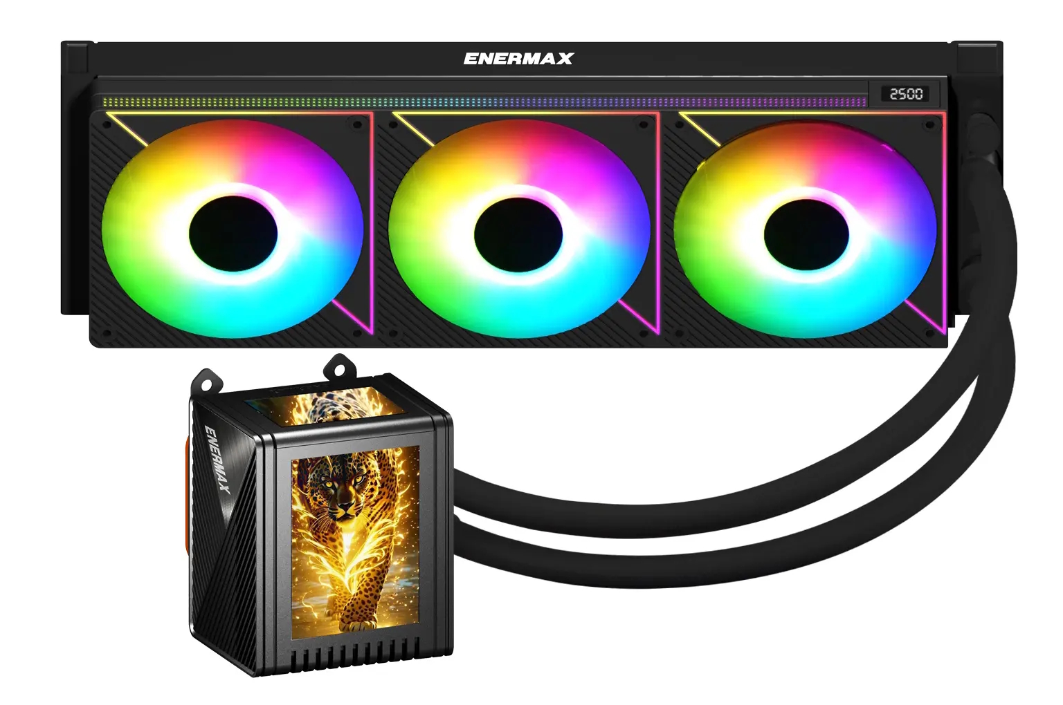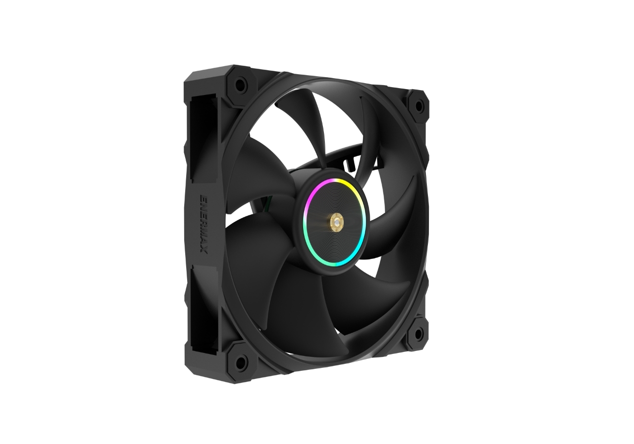 For those seeking advanced cooling solutions, Enermax presents the Aquasora ACS 360. This liquid cooler features a TDT ADV pump and AeroCore Structure plate, complemented by a 3.5-inch LCD and a rotatable 2.4-inch screen for real-time readouts like coolant temperature and pump RPM. It also includes a 70mm VRM fan and three 120mm ARGB fans that push up to 82 CFM apiece. Complementing the AIO is the PF120 ARGB fan featuring anti-vibration pads, a nine-blade impeller and RGB illumination, which can be configured via most motherboard software.