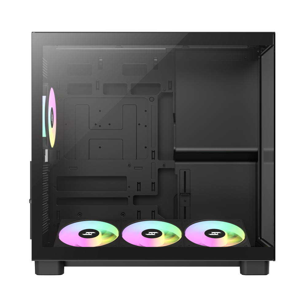 The internal structure of the Nex C53 (via TechPowerUP) has been designed to accommodate almost anything, including graphics cards up to 410 mm in length and CPU air coolers up to 175 mm tall. Space efficiency is achieved through a front-mounted PSU layout that optimises space while providing enough room for a 360 mm top-mounted radiator. Cooling is handled by up to seven 120 mm or five 140 mm fans, with four ARGB fans pre-installed. This includes three 120 mm reverse-blade fans at the bottom to draw in fresh air and one rear-mounted exhaust fan.