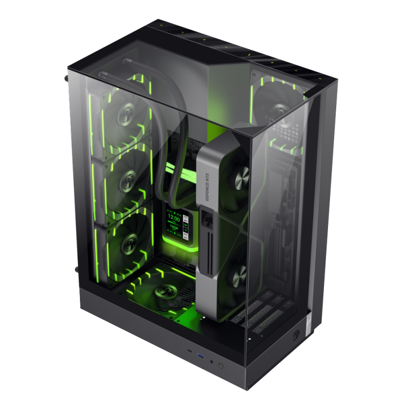 The T20 features a distinctive internal layout with a 90° motherboard arrangement, a design approach that GameMax claims creates a “stack cooling” effect intended to enhance natural heat dissipation. The chassis comes equipped with two pre-installed 120mm Tornado T12-R ARGB PWM fans, but it supports up to a total of 5x 120mm fans, including accommodation for radiators up to 360mm for serious liquid cooling.