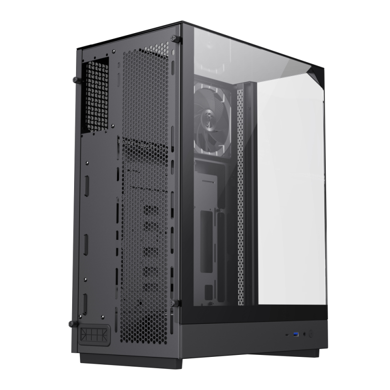 Despite its small size, the T20 has quite good compatibility with modern hardware. It supports motherboards with rear connections, often referred to as BTF (Back to Front) designs, offering cleaner cable management by hiding connectors on the reverse side. Power supply support is limited to SFX and SFX-L units, which are common in smaller form factor builds. Another feature is the ability to install the GPU vertically, eliminating the need for a separate PCIe riser cable.