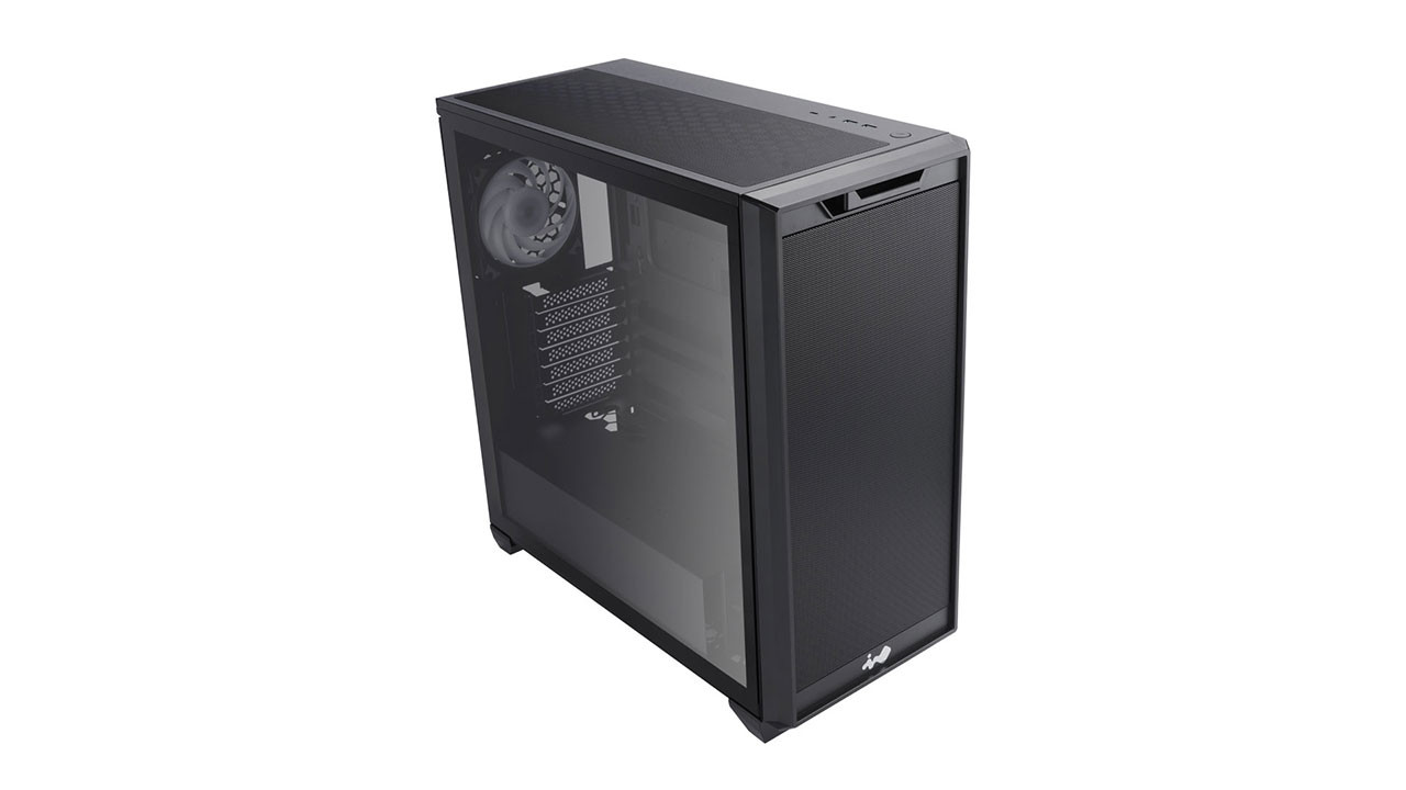 To match the all-black chassis style, InWin includes a Neptune ARGB fan. The Neptune fan has a nominal noise level of under 20.5 dBA and airflow rates up to 60 CFM. The front I/O is on top for easy access and unobstructed front ventilation and features a USB 3.2 Gen 2×2 Type-C interface, two USB 3.2 Gen 1 ports, and a 3.5mm HD audio combo jack.