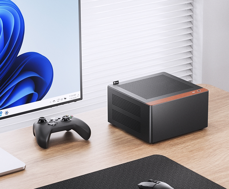 The Jonsbo N10 and NV10 can be positioned vertically or horizontally, adapting to various workstation layouts and space constraints. The N10 and NV10 are available in silver and black, with a touch of elegance added by the North American walnut trim on the front I/O panel featuring a single USB-C port.