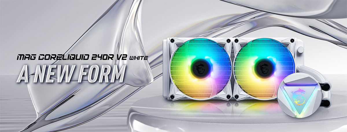The MAG Coreliquid 240R V2 is also available in white now, offering the same performance as the original model. To cool the radiator, MSI included 2x ARGB 120mm fans that can be customised with other RGB lighting components in the system. In addition, the pump features a three-phase motor to reduce vibration while operating and a rotatable blockhead that users may choose to adjust. Lastly, this CPU cooler features out-of-the-box support for LGA1700 sockets.