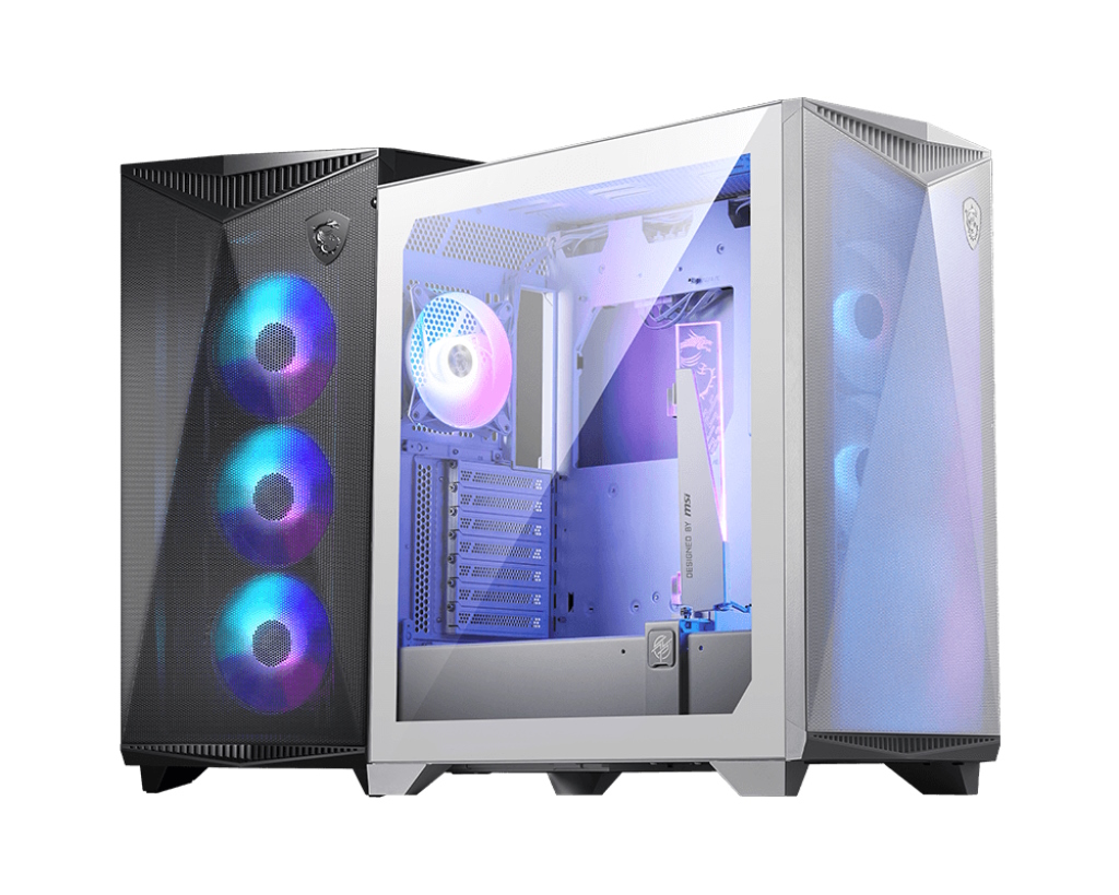 The MAG Forge 320R Airflow comes with four ARGB fans (supports up to 11x 120mm or 5x 140 mm) and supports up to a 360 mm radiator on top. Moreover, it features DIY-friendly cables, an ARGB controller, and an Insta-Light Loop button that allows you to change between RGB lighting profiles. The smaller MAG Forge 120A Airflow features six pre-installed auto-ARGB fans with an On/Off LED switch and is compatible with 240 mm radiators (front and top).