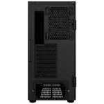 There are 7x expansion slots, 2x 2.5-inch drive bays behind the motherboard tray, and an additional 3.5/2.5-inch drive bays in the drive cage below the PSU shroud. If the drive cage is installed, you can use a PSU up to 180mm long. If the drive cage is removed, you can mount up to a 200mm long PSU. The front I/O panel includes 2x USB-A 3.2, 1x USB-C 3.2, 2x USB-A 2.0, 1x 3.5mm audio-out jack, and 1x 3.5mm audio-in jack.