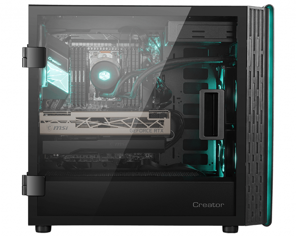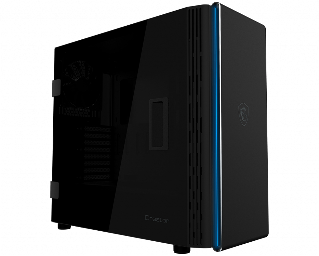 The MSI Creator 400M is the “industry's first” case using tempered laminated glass. Aimed at content creation, multi-tasking and gaming, this space grey chassis has a front aluminium panel that can be opened to increase the case's airflow. Additionally, there's a subtle RGB LED strip to “bring the most comfortable working environment for creators”.