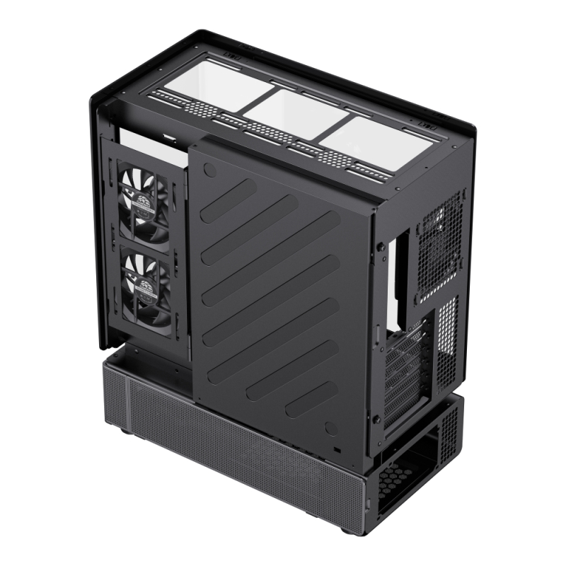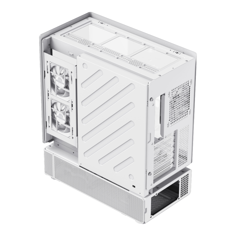 Inside, the case features a modern dual-chamber layout that conceals the PSU and storage, and it offers native support for the latest back-connect motherboards. This combination enables builders to create a cable-free stage for their components, further enhanced by a dedicated cable management compartment with a hinged lid.