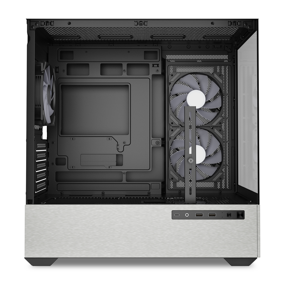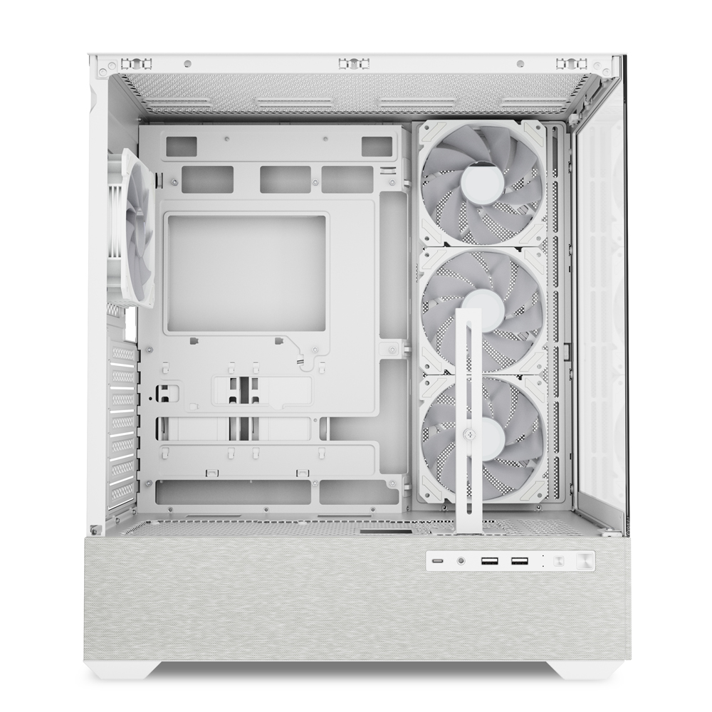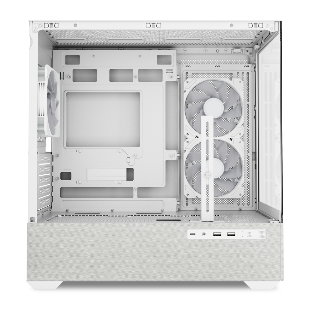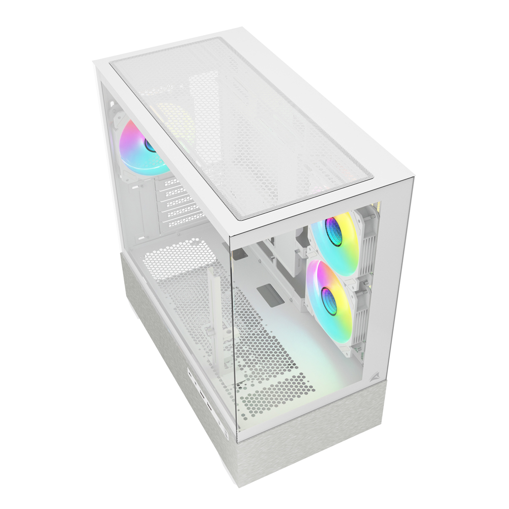 The ATX-sized AK7 ARGB comes well-equipped for cooling right out of the box. It includes four 120mm ARGB PWM fans, and in a thoughtful touch for such a case, three of these are reverse-blade models designed for the side intake, ensuring a clean look without the fan's motor hub being visible. For liquid cooling, the case can support up to a 360 mm radiator, with room for a secondary 280 mm radiator as well. As for drives, there's space for two 3.5″ HDDs or four 2.5″ SSDs.