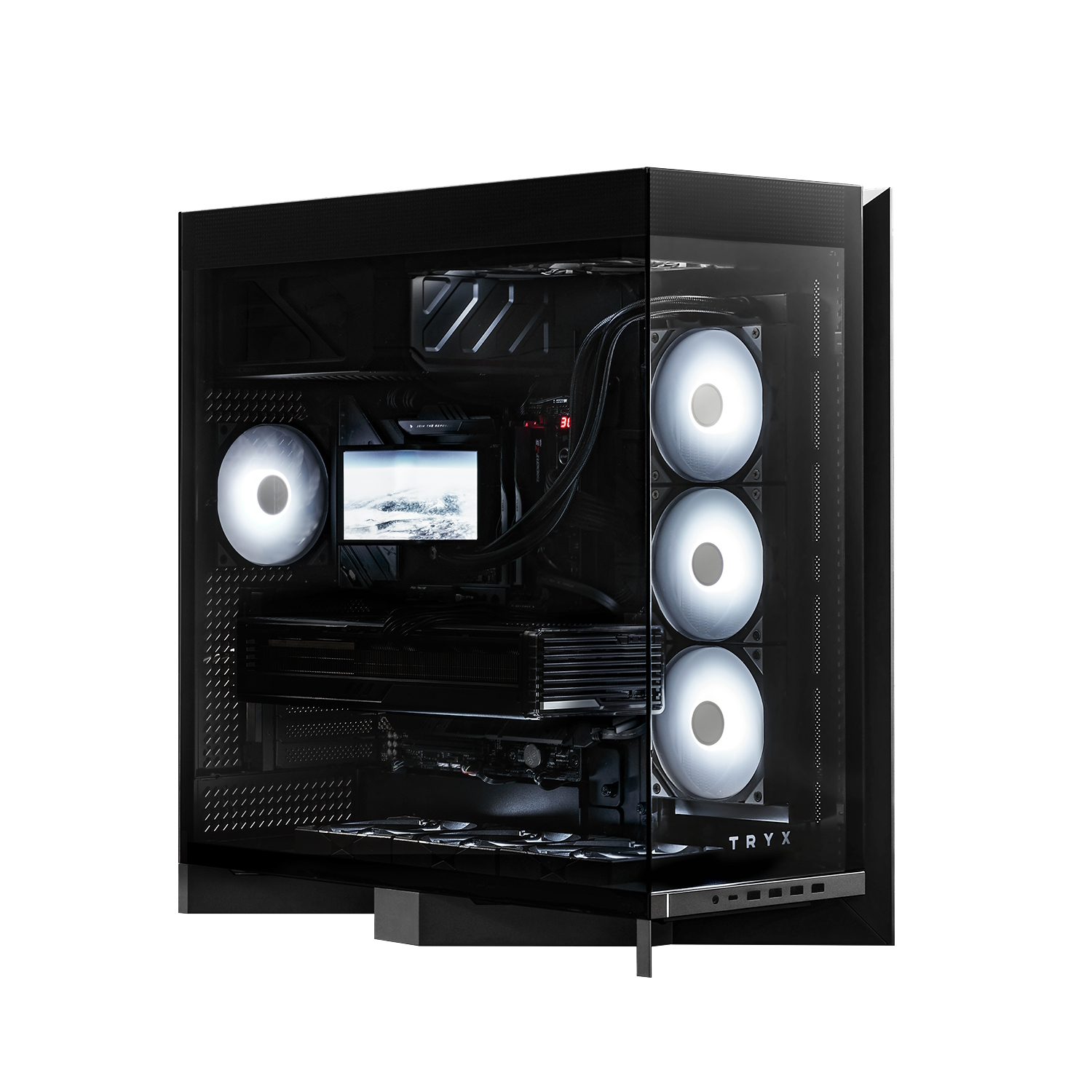 Tryx has opted for a unique single-chamber design, placing the motherboard and PSU (top or bottom mounted) on the same side,. The internal layout is modular, so you can swap things around if needed, which is particularly useful for those building custom cooling loops.