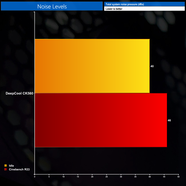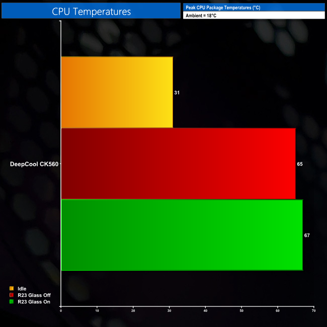 The CK560 includes 4 case fans, all fans were set to the default fan curve in MSI BIOS to ensure fair testing throughout. All tests were performed with the glass side panel installed and then repeated with it removed.