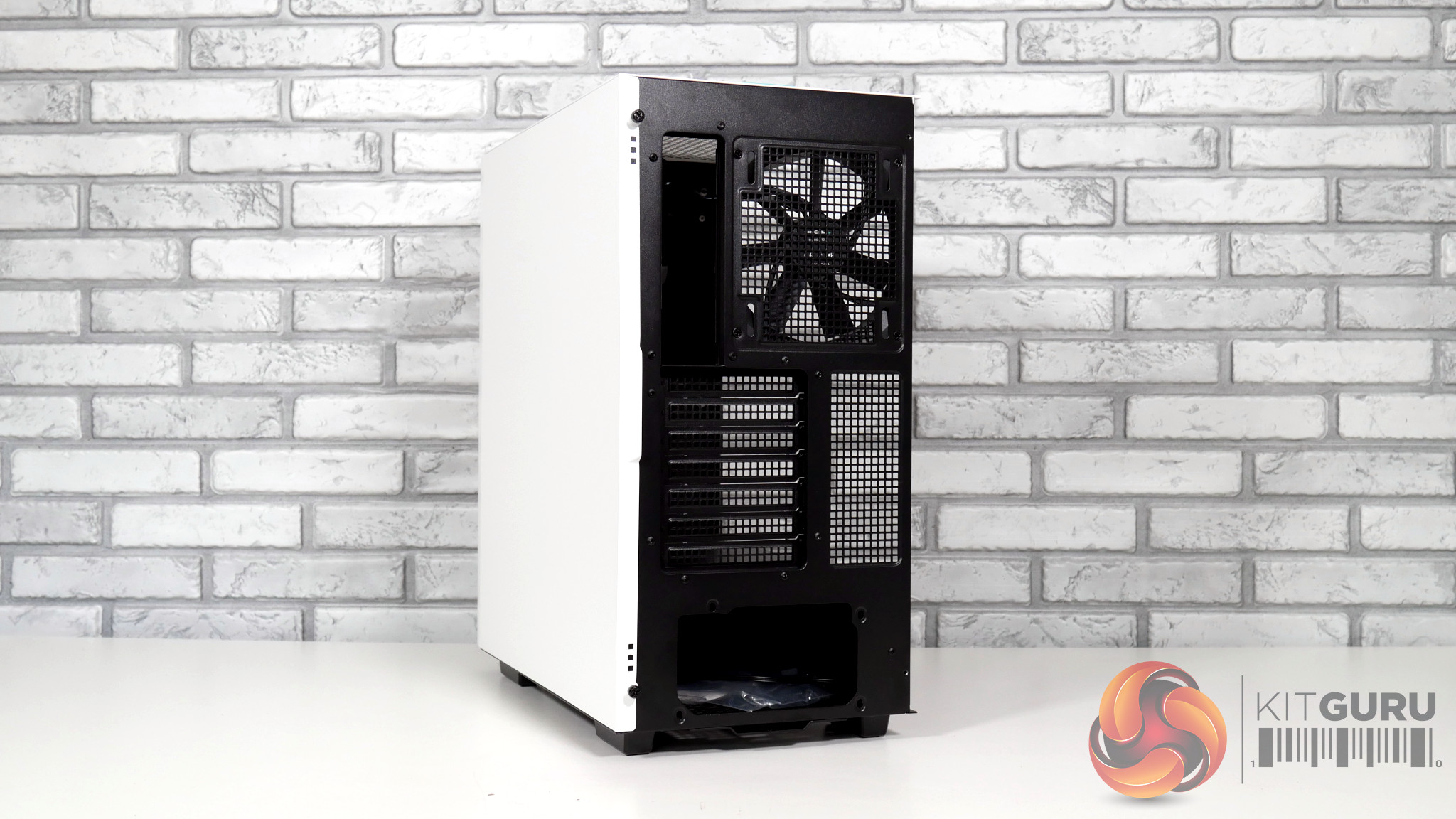The rear of the case can support a single 120 or 140mm fan and radiator, the 140 is a fixed position while the 120 does have some movement to accommodate top-mounted radiators, or to align with an air cooler. There are 7x PCIe slots with no fiddly additional brackets that we see on some other cases and further venting for airflow. Finally, there is a rear access dust filter for the PSU, this is a fully-fledged filter too, and not a basic slot in piece of mesh. The PSU is installed from the back side though, so there is no removable PSU installation bracket to the rear.