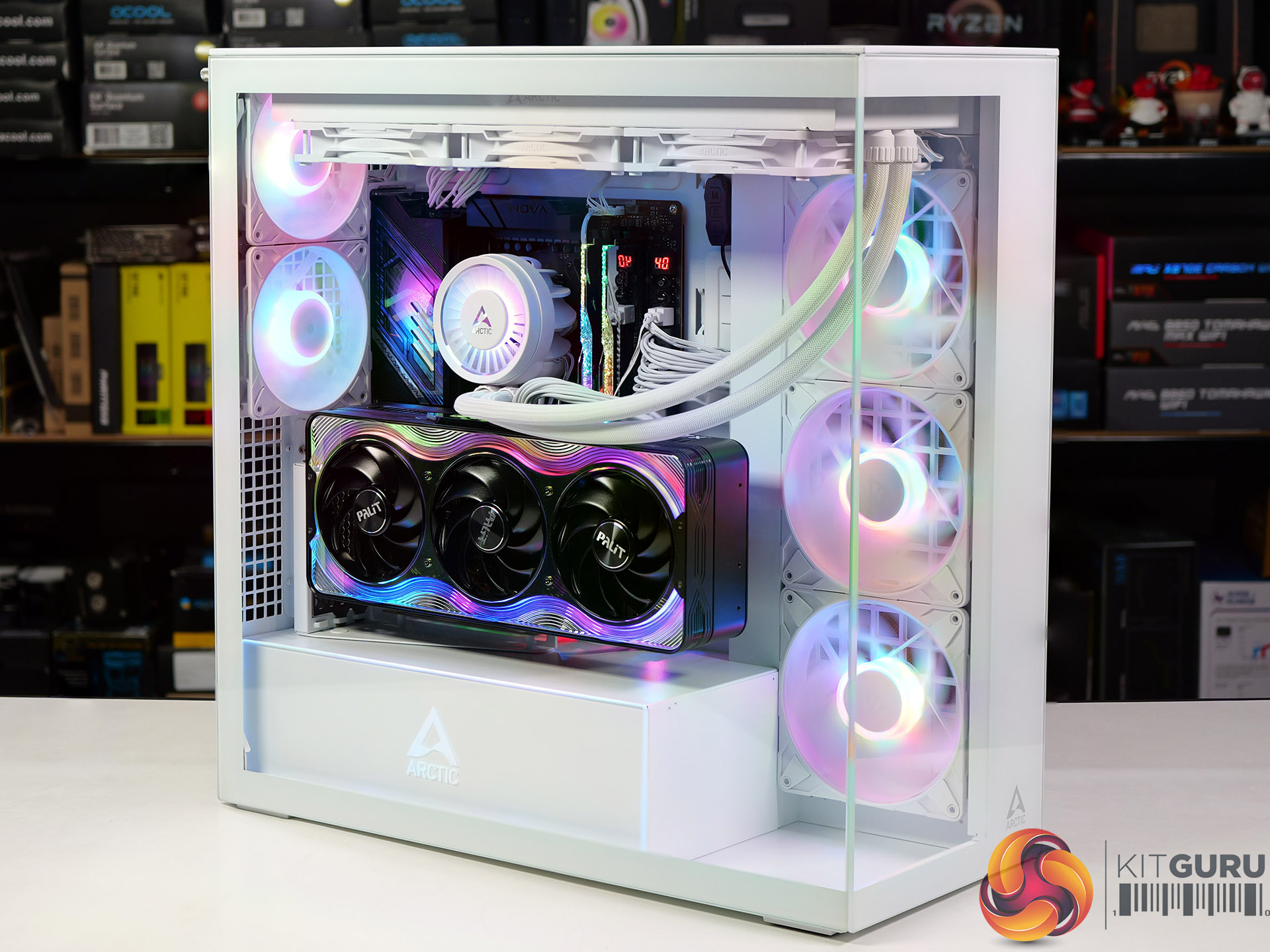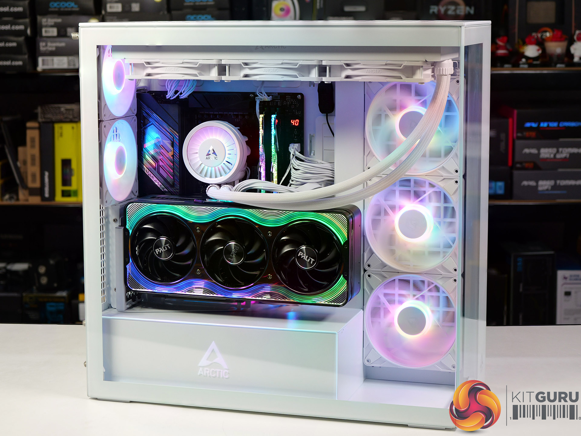 - The GPU riser and Arctic 420mm AIO cooler clashes with our Palit RTX 5080.