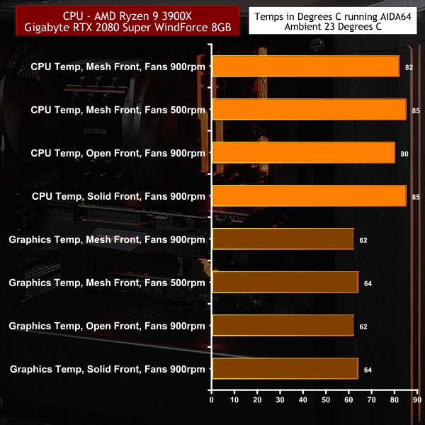 Heading in the other direct we replaced the Mesh front panel with the panel from the original Pure Base 500 and only saw an increase of three degrees. Our conclusion is that the Pure Base 500DX works well and cools successfully with pleasingly low levels of noise.