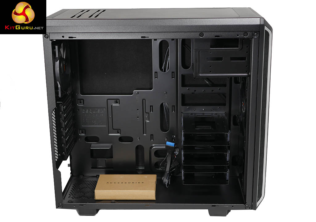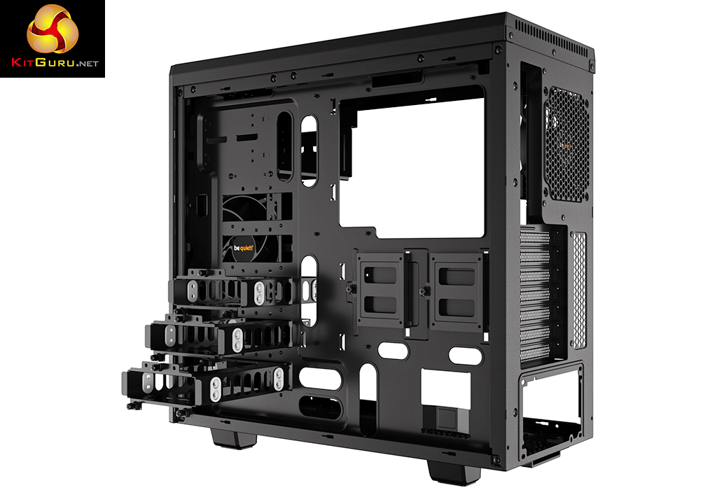 You can see the optical drive bay housing and the three separate hard drive bays but perhaps the most exciting thing is the inclusion of two Pure Wings 2 fans, 140mm at front and 120mm at the rear. At this stage in the game KitGuru was ready to throw in the towel and award the Pure Base 600 a ‘Dull but Nice’ award and move on to the next review.