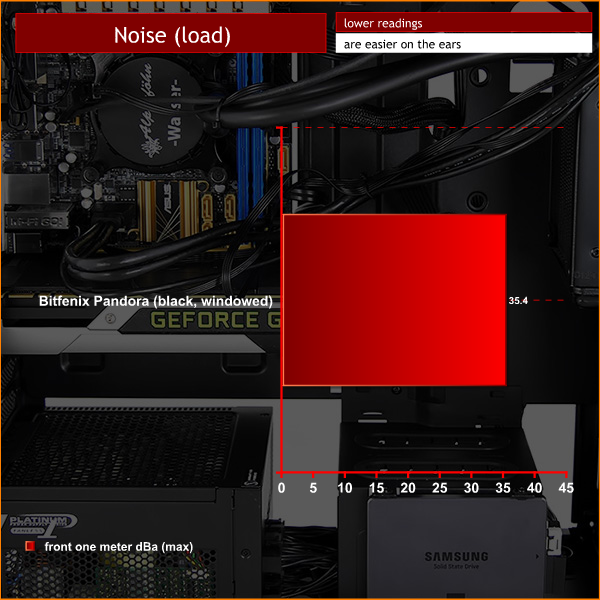 The BitFenix Pandora does a decent job of cooling when the system is idling, and despite our concerns about the small form factor it did sterling service under load. For this build we used a GTX 980 rather than our usual Sapphire R9 290 (purely for cosmetic reasons) and this undoubtedly helped keep the temperatures low but nonetheless the BitFenix Pandora does better than we would expect from a Micro-ATX tower.