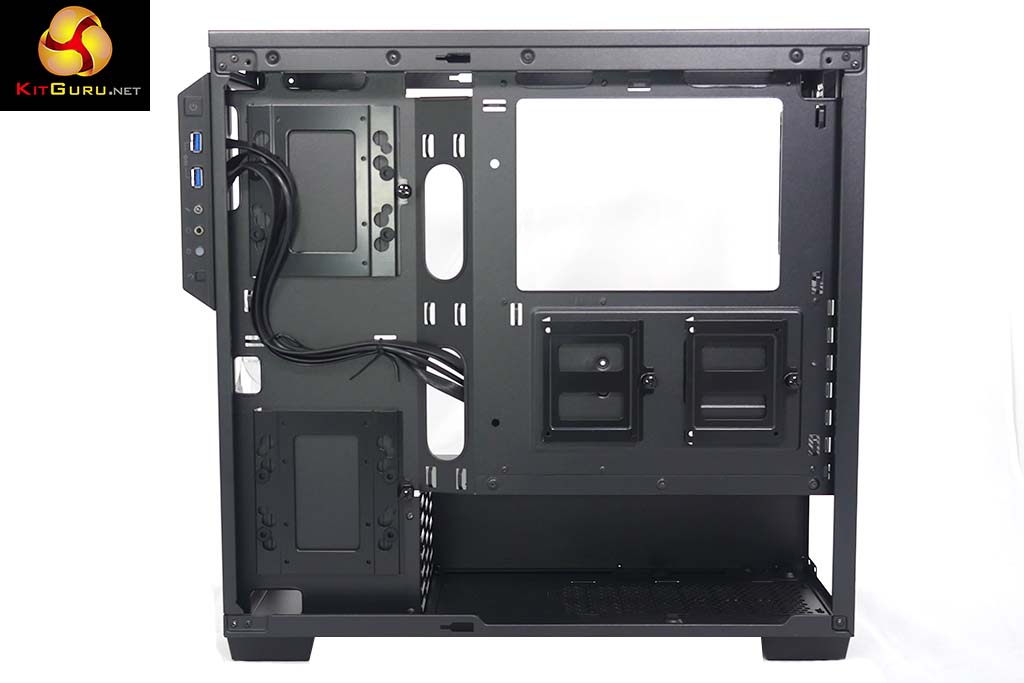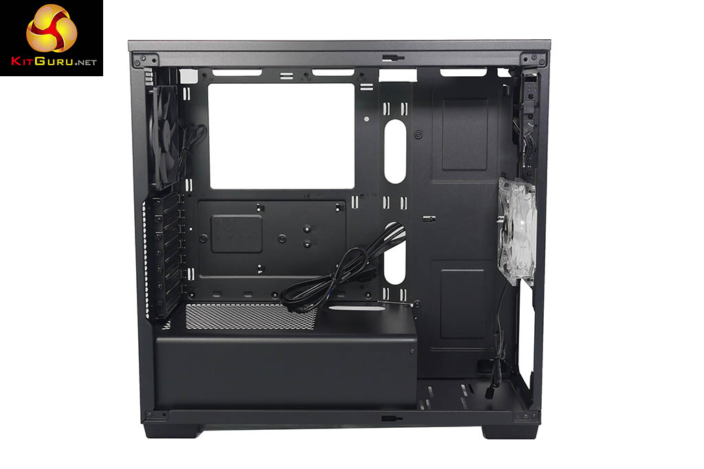 You don’t get much in the way of bells and whistles for your money and can forget about luxuries such as integrated lighting or tempered glass. Those features are simply out of reach at £65. Instead you get a basic plastic window in the side panel and a complete absence of noise deadening material. The rear 120mm fan is a plain black item and perhaps the most exciting part of the deal is the front 120mm LED fan.