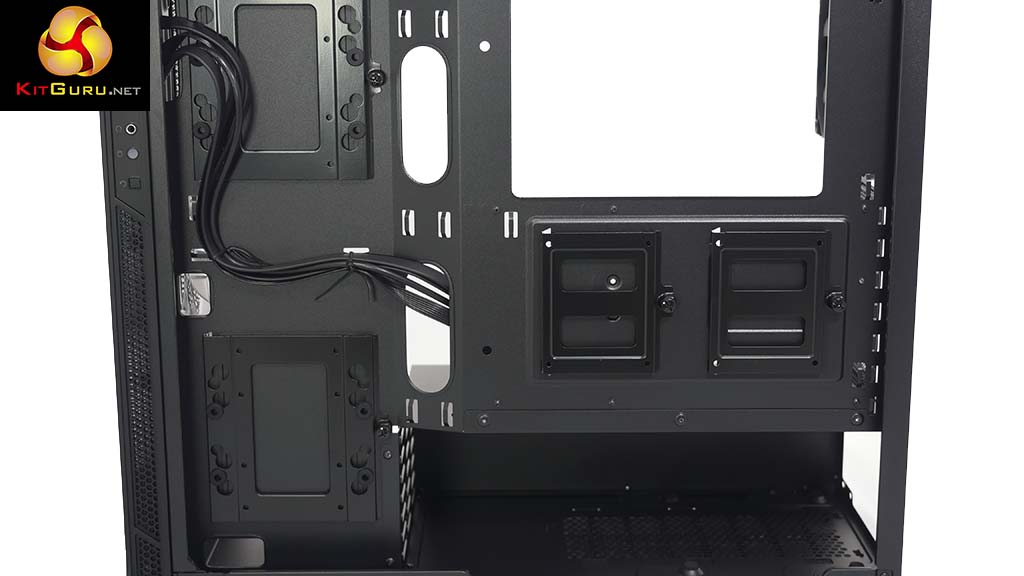 On the rear of the motherboard tray there are four stealth drive bays and plenty of room for your power supply and cabling. The overall look of the build was clean and tidy and we only had two complaints. The first is that cable management above the power supply cover isn’t great and the second is that the top of the case is unfiltered and open to the atmosphere.