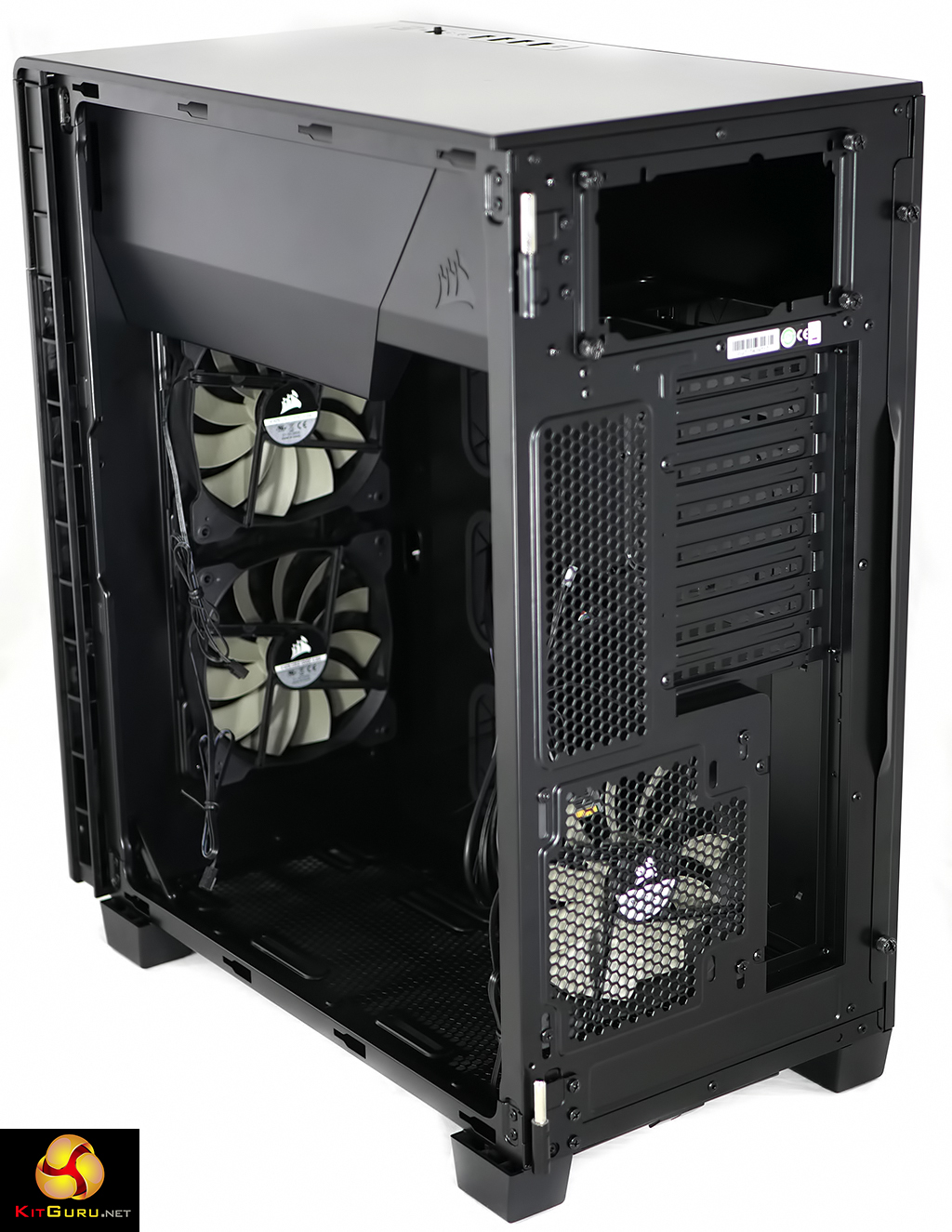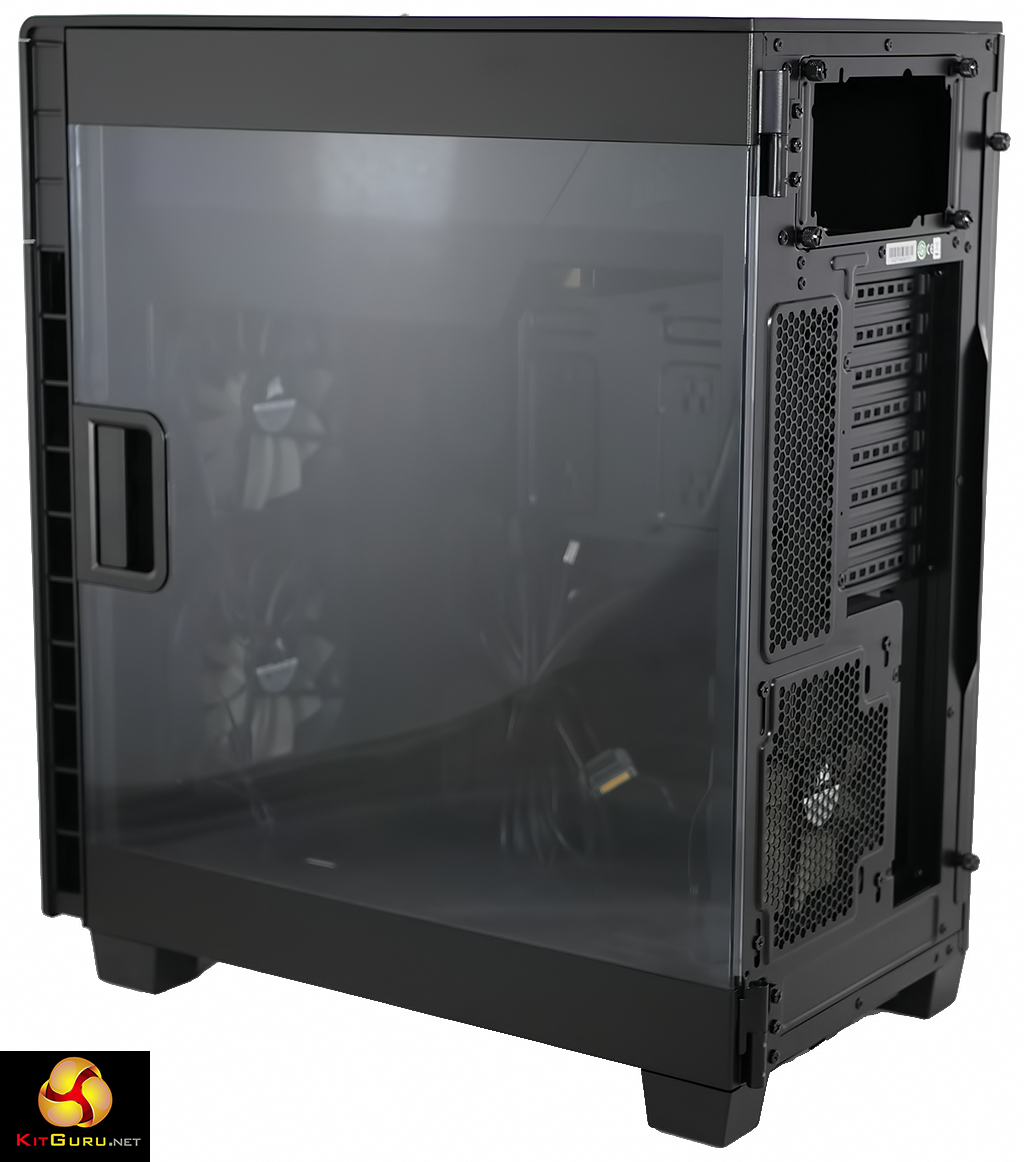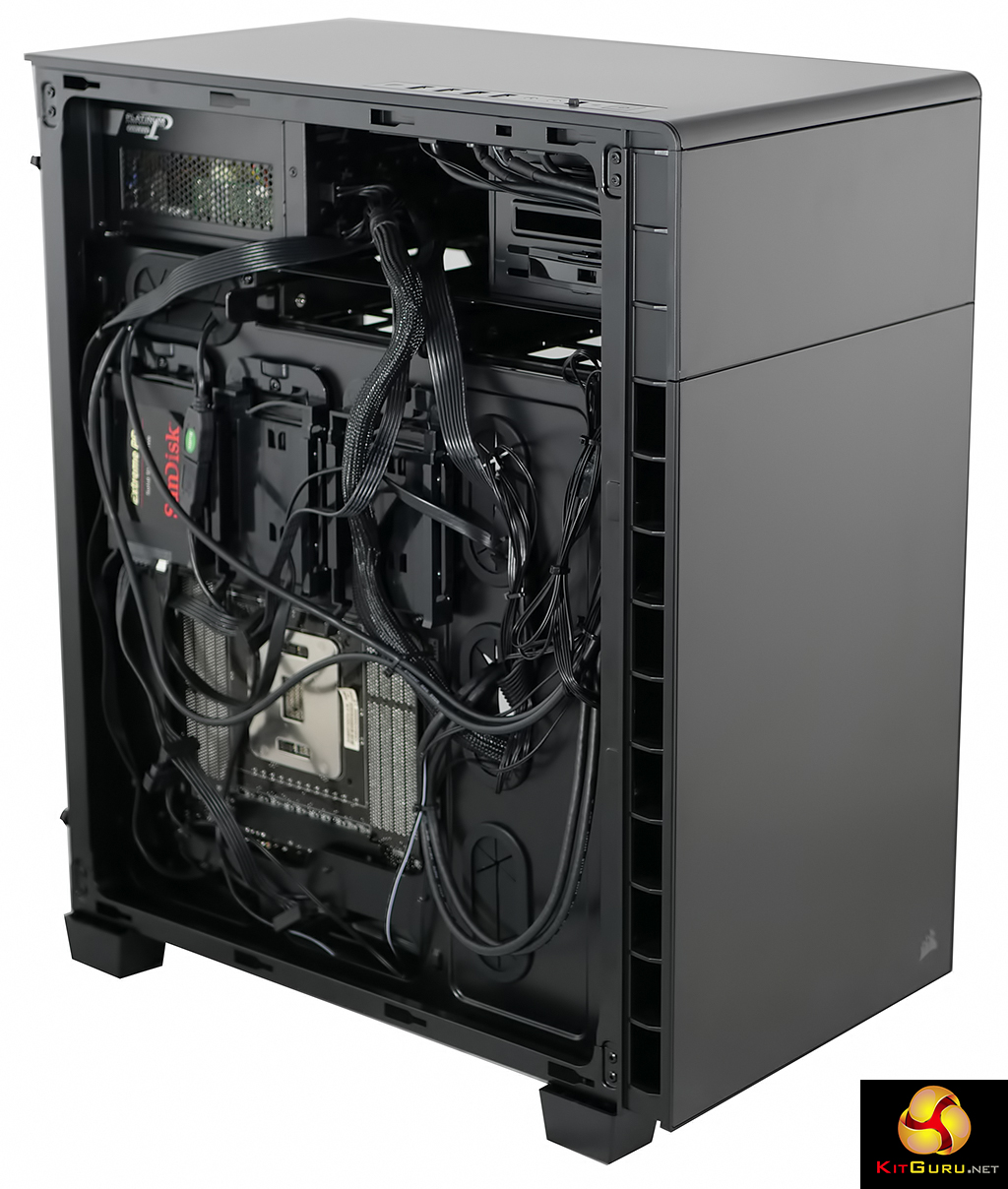 Corsair Carbide 600C (Clear) or Q (Quiet) adopts a novel design that effectively turns your PC ‘upside down'. The easiest way to understand what Corsair has done is to look at our photos and watch the video where you will see the motherboard mounts on the ‘wrong' side of the case and upside down to boot.