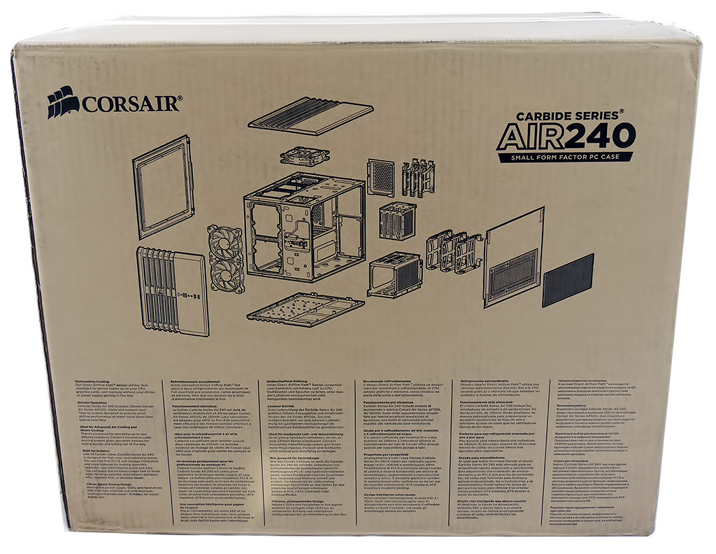The packaging shows a series of line drawings of the Carbide Air 240.