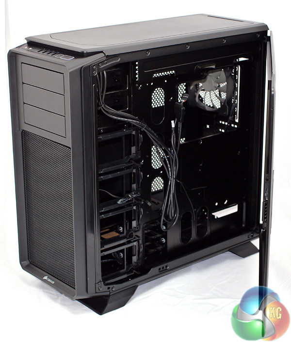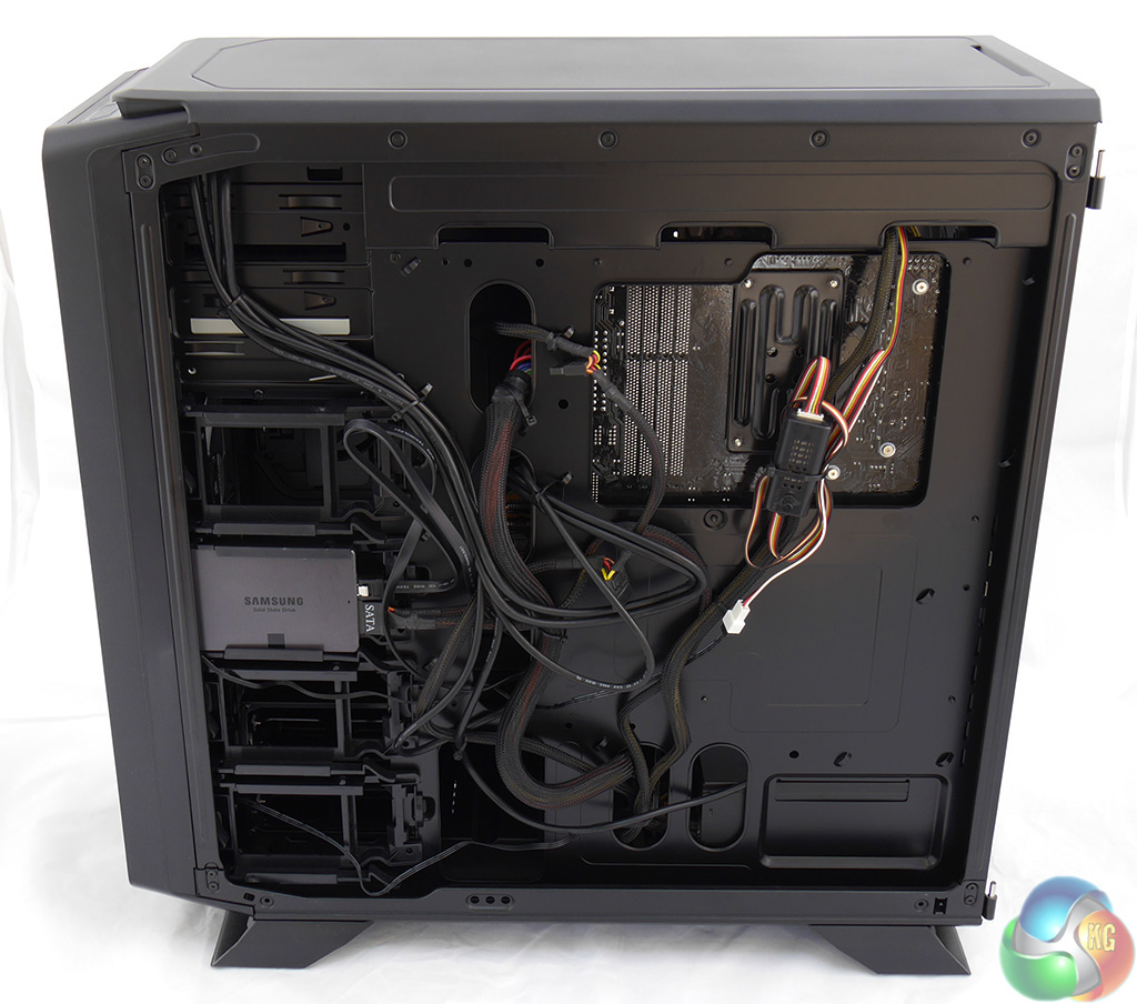 To my eye the most obvious features are the enormous cut-out in the motherboard tray and the hefty holes around the edge of the motherboard for cable management.