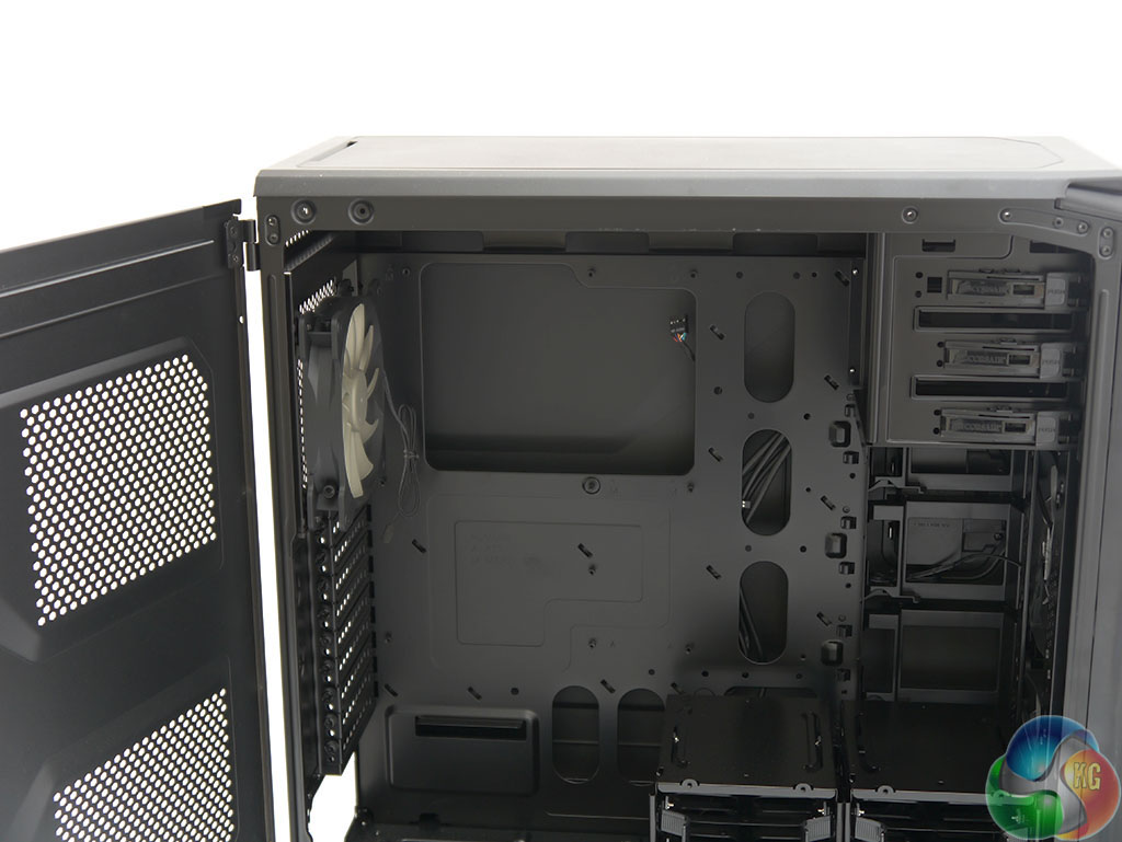 Taking a tour around the inside of the case, there isn't a great deal to dislike. The power supply can be installed with the fan either up or down, there are two 3.5-inch drive towers that each accommodate three drives, and up at the top of the case you'll find three optical drive bays.