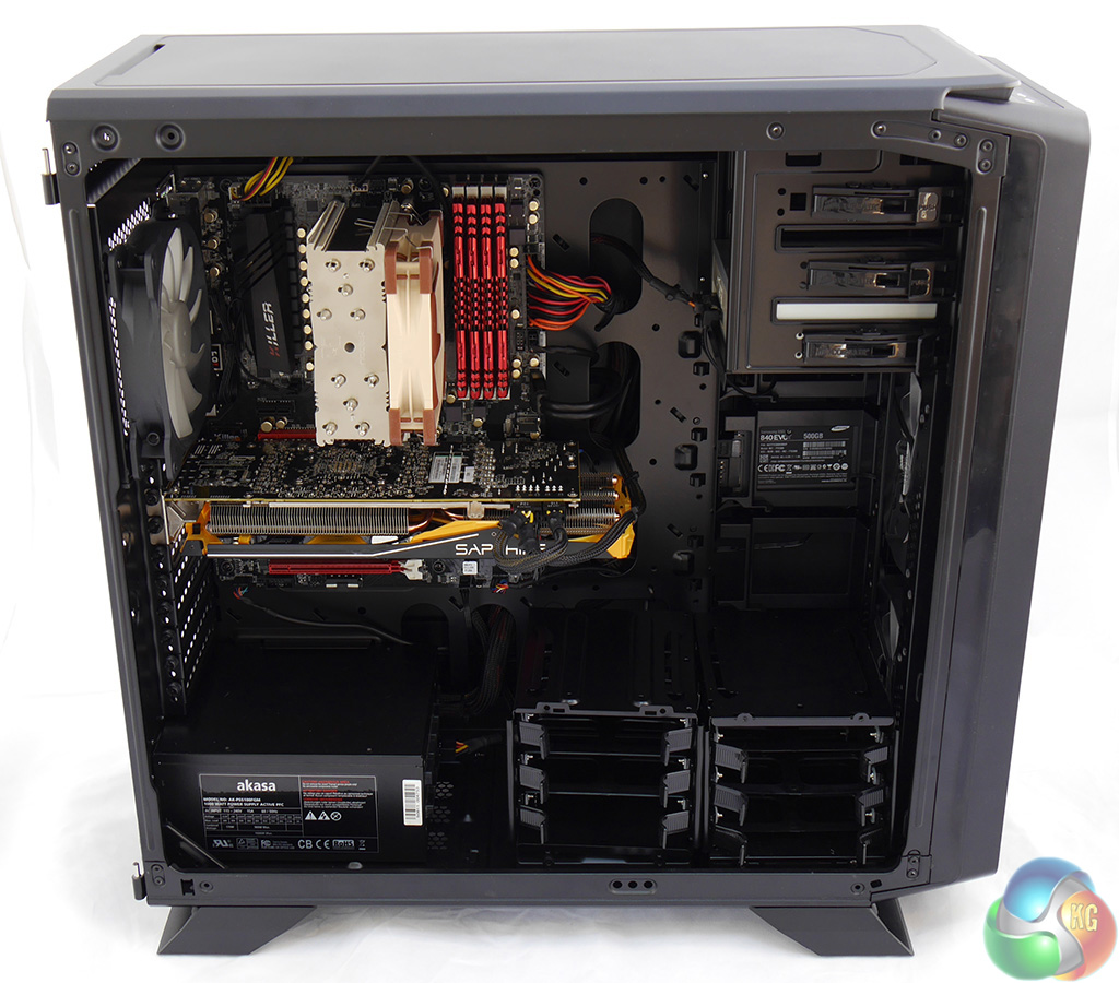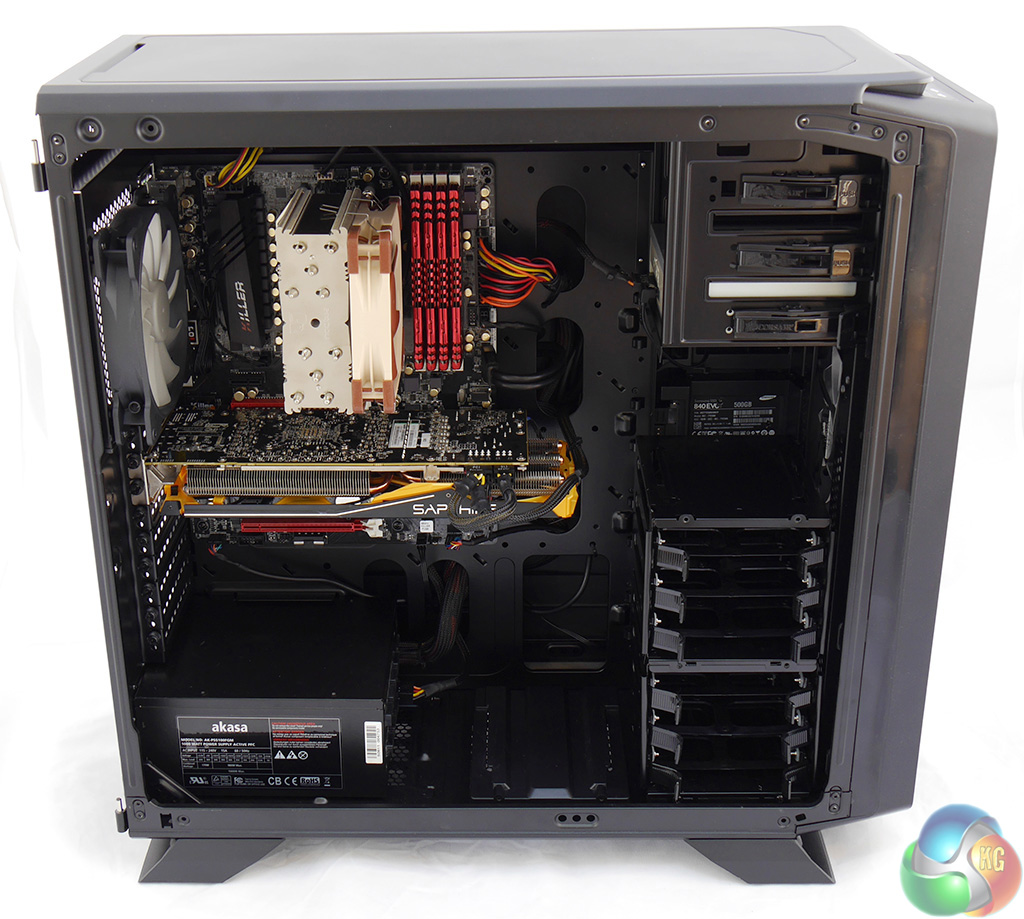 If I had built the test system using a conventional power supply I would certainly want to remove at least one drive tower to create some space for the cables. As it happens I learned from my self-inflicted problems during the Corsair Obsidian 450D build and this time I employed a modular Akasa Freedom Power 1000W PSU so both drive towers could remain in place. The fact was I didn't much like the appearance of the drive towers so I decided to remove one anyway.