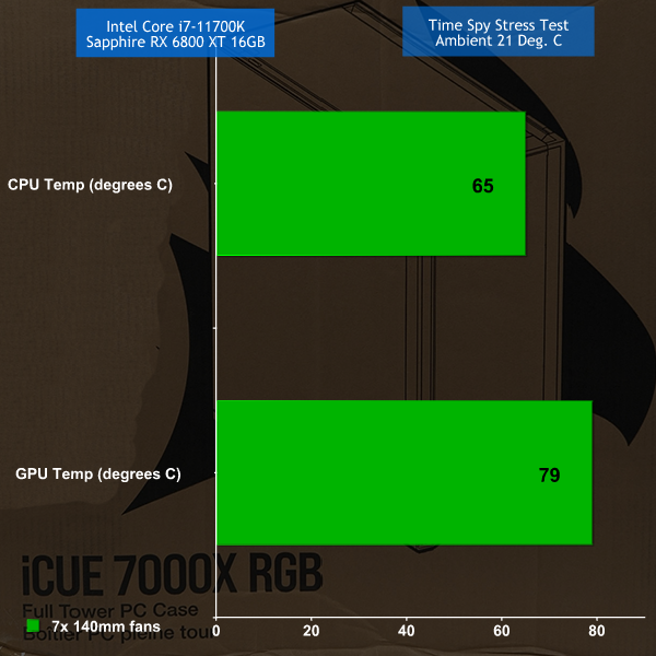 We were confident this sizeable case would provide decent cooling and the figures bear that out. We started with four 140mm case fans and then added three more 140mm fans with our chosen Corsair iCUE H170i Elite Capellix CPU cooler, and can easily imagine more extreme cooling systems that add even more fans. Unless you do something utterly bizarre with the Corsair iCUE 7000X we can safely say the cooling will not be an issue.