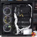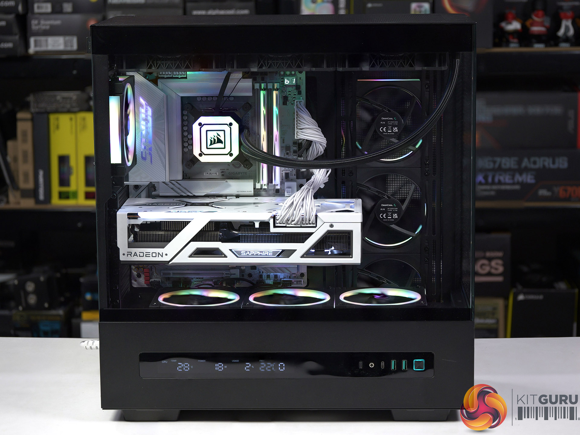 Once we had built our test PC and installed an AIO cooler in the roof along with seven 120mm fans we found the lighting show to be very pleasant and we also enjoyed the digital display in the side of the case that reports data from the CPU and graphics card. The weird thing is that cooling is more dependant on fan speed than it is on the number of fans you install. This means you can either have a quiet but warm PC or a really loud PC that cools effectively, exactly as you will see in our video.