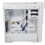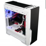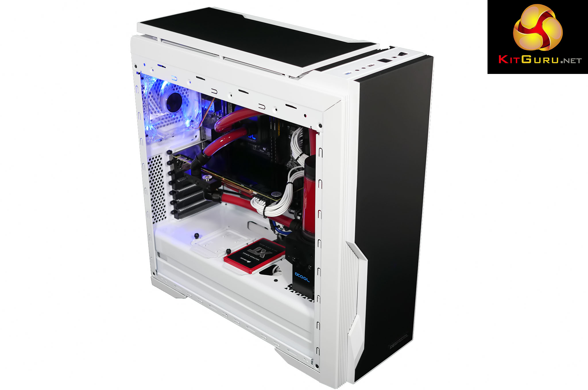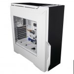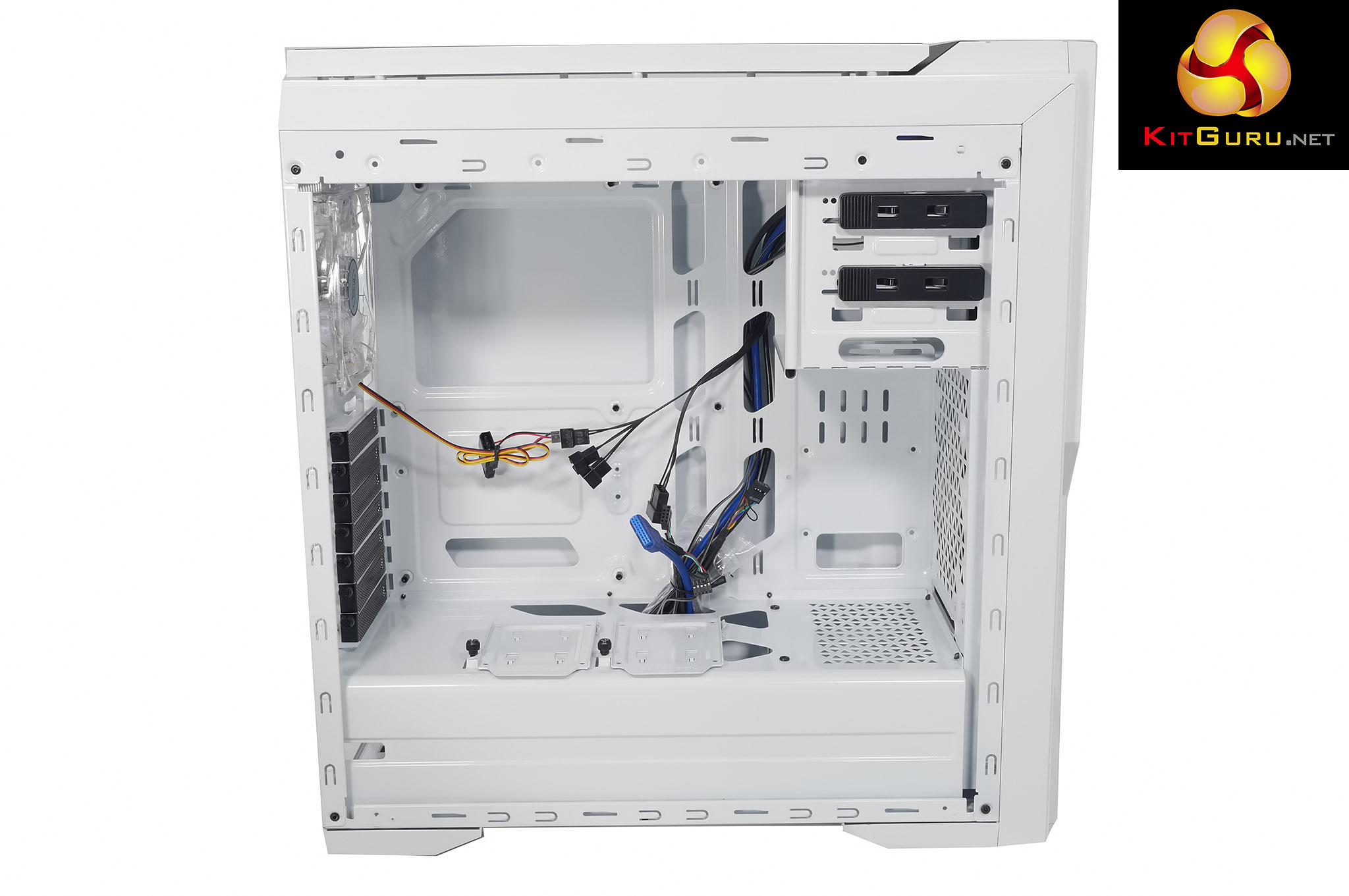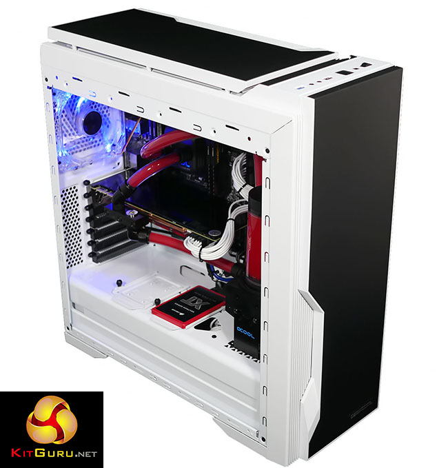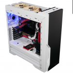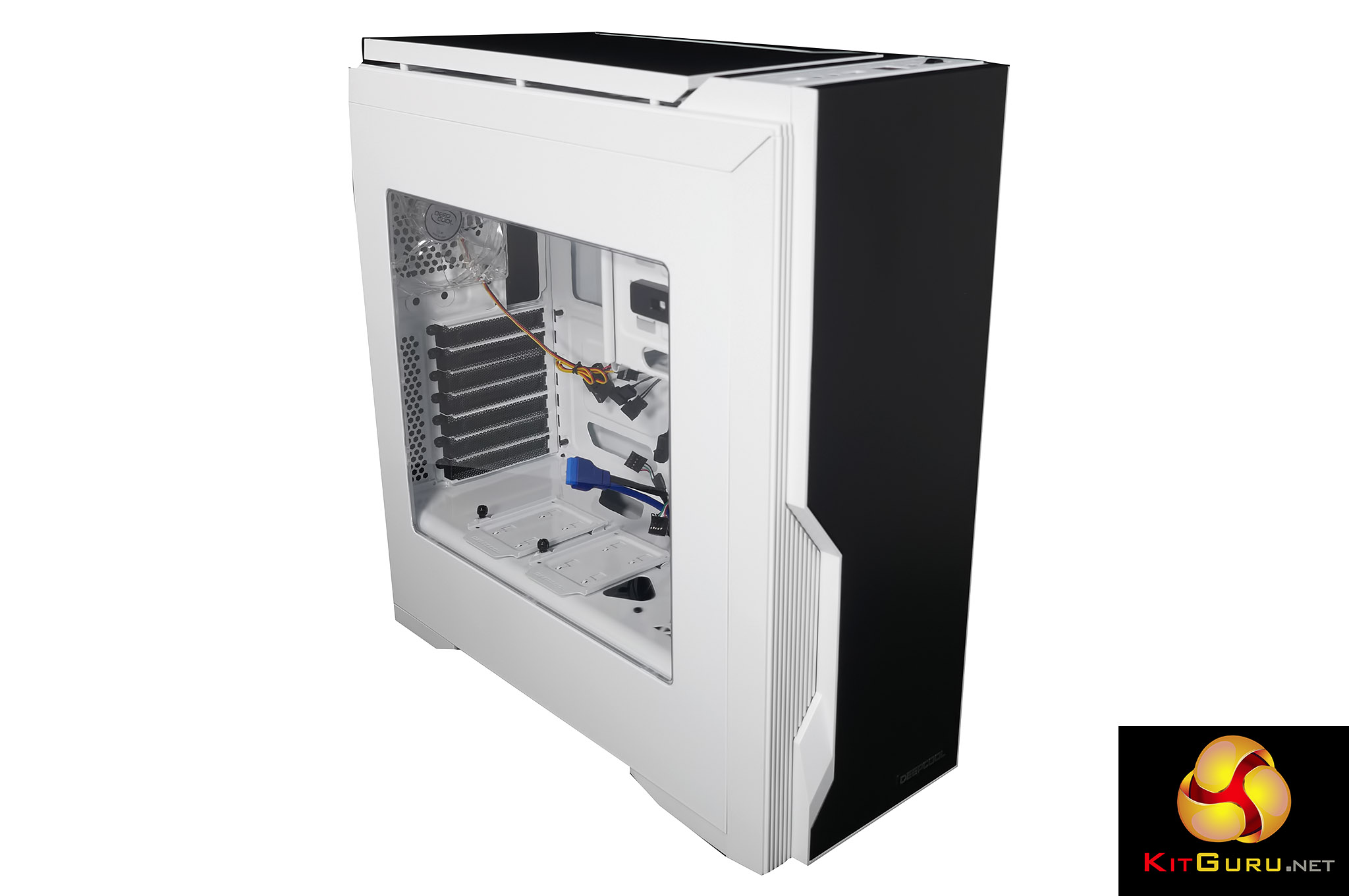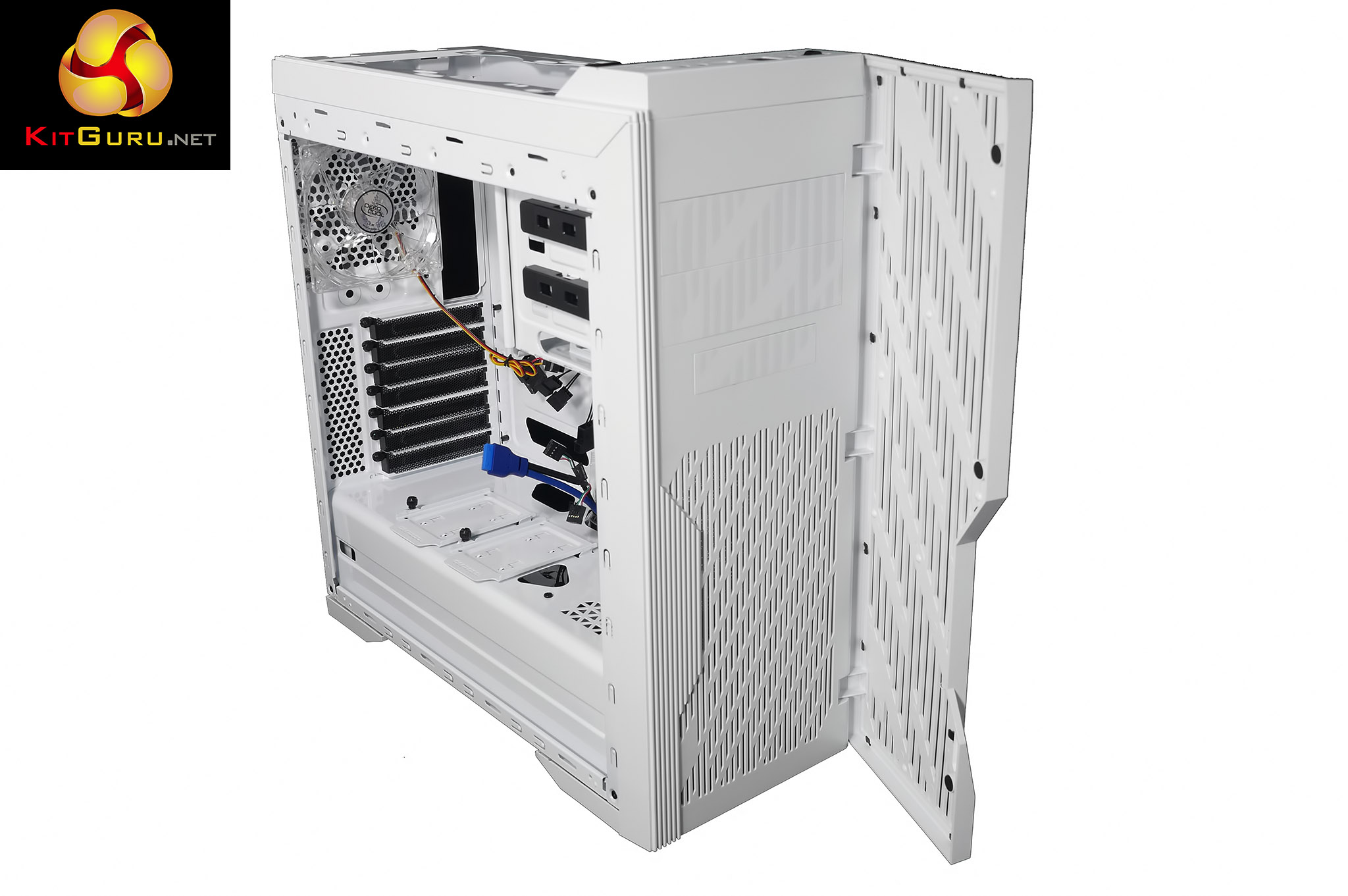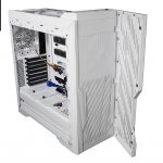 The shiny white finish has been neatly applied and it isn’t immediately clear which parts of the case are plastic and which are steel. Remove a few thumbscrews and it quickly becomes apparent the side panels are steel and the clip-on top and front panels are plastic.